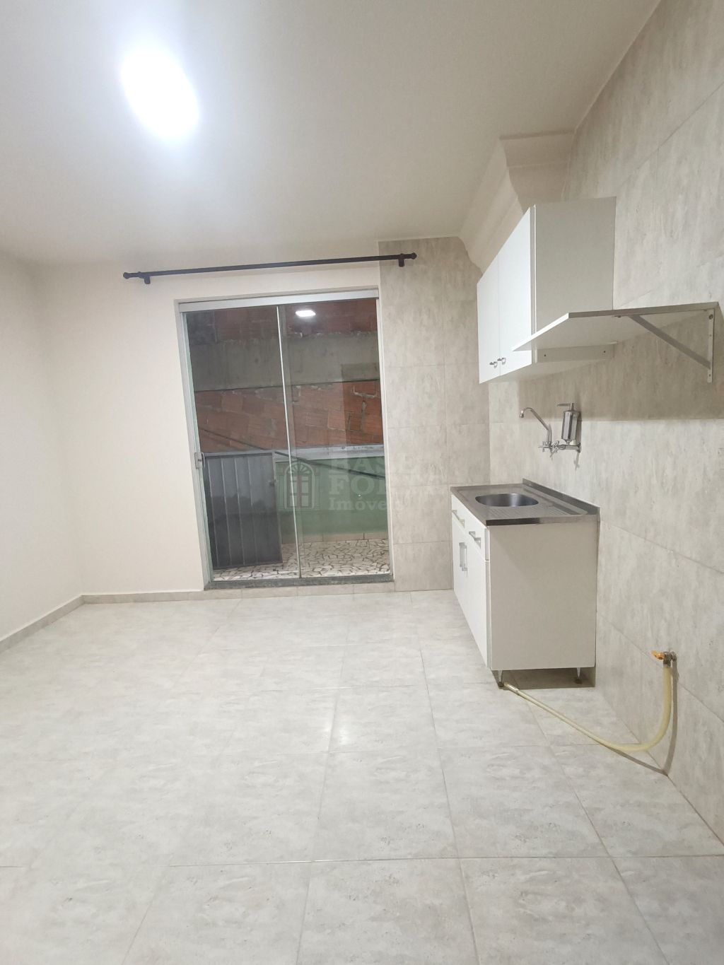 Apartamento contendo 1 quarto, sala e cozinha conjugados (com armários e terraço) e bwc social.