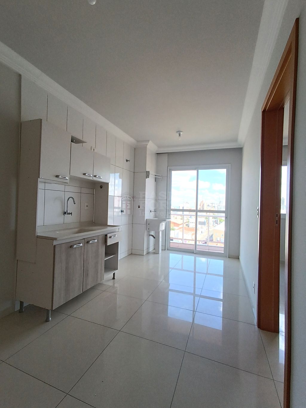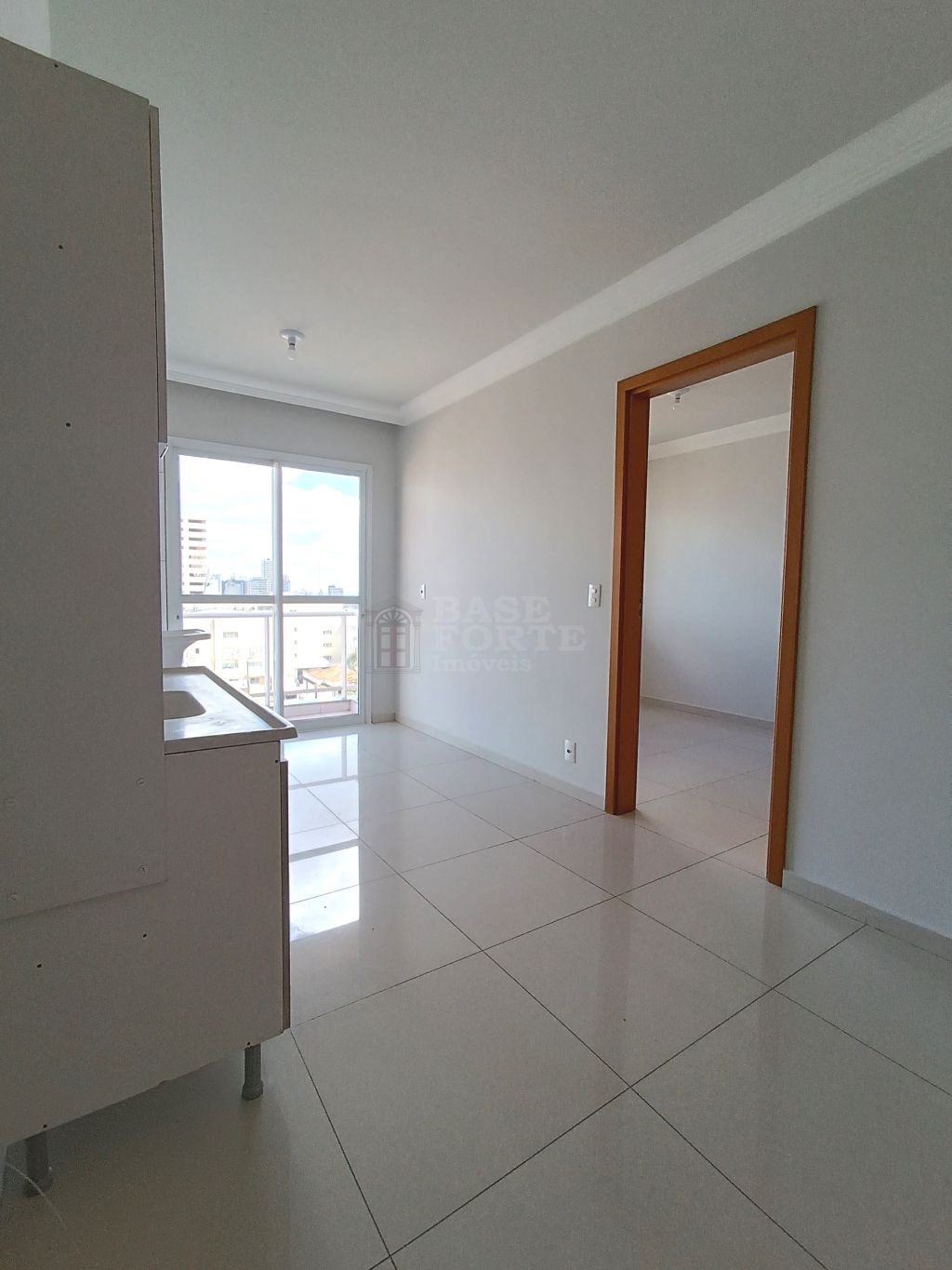Apartamento contendo 1 quarto, sala com sacada, bwc social, cozinha com armários e área de serviço conjugadas.