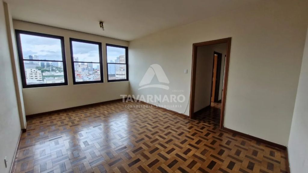 Amplo apartamento na região central com área de 152,40 m². Conta com 3 dormitórios, sala, cozinha, banheiro social grande, área de serviço, dependência completa de empregada e 1 vaga de garagem.