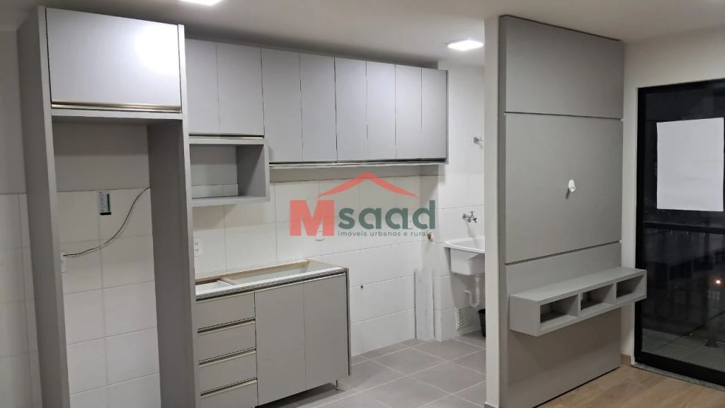 - 1 cozinha c/ armários;- 1 lavanderia c/ armários;- 1 sala de estar/sala de jantar c/ painel de TV;- 1 banheiro;- sacada c/ churrasqueira;