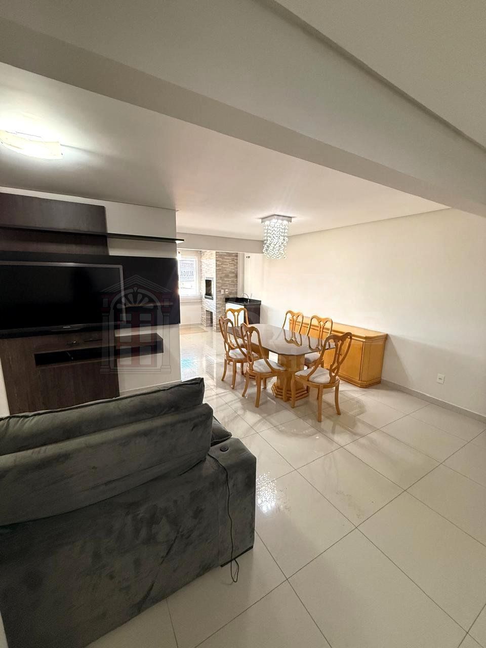 Apartamento semimobiliado contendo 3 quartos (sendo uma suíte com closet e sacada; quartos com armários), sala para 2 ambientes com área gourmet integrada com churrasqueira e pia, cozinha (com armários; geladeira e fogão), lavanderia (com armários), bwc social e vaga dupla de garagem, medindo aproximadamente 126,73m².