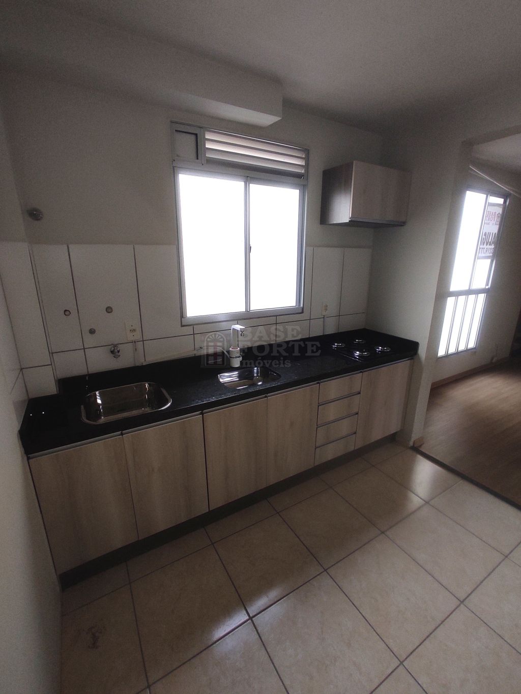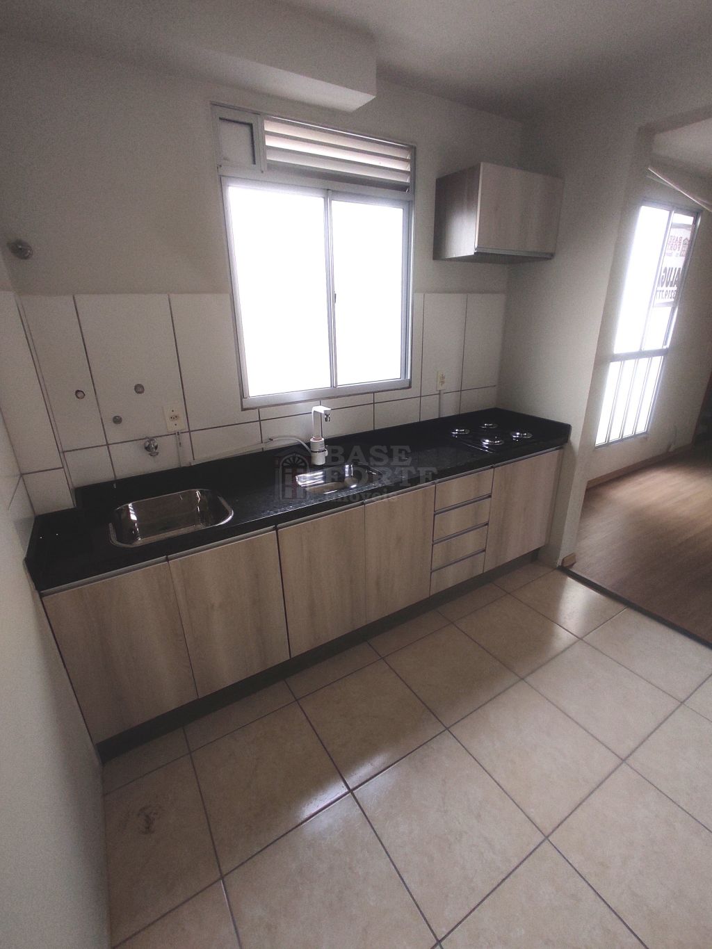 Apartamento contendo 2 quartos, sala cozinha e área de serviços conjugados (com armários de cozinha e cooktop), bwc social e estacionamento.