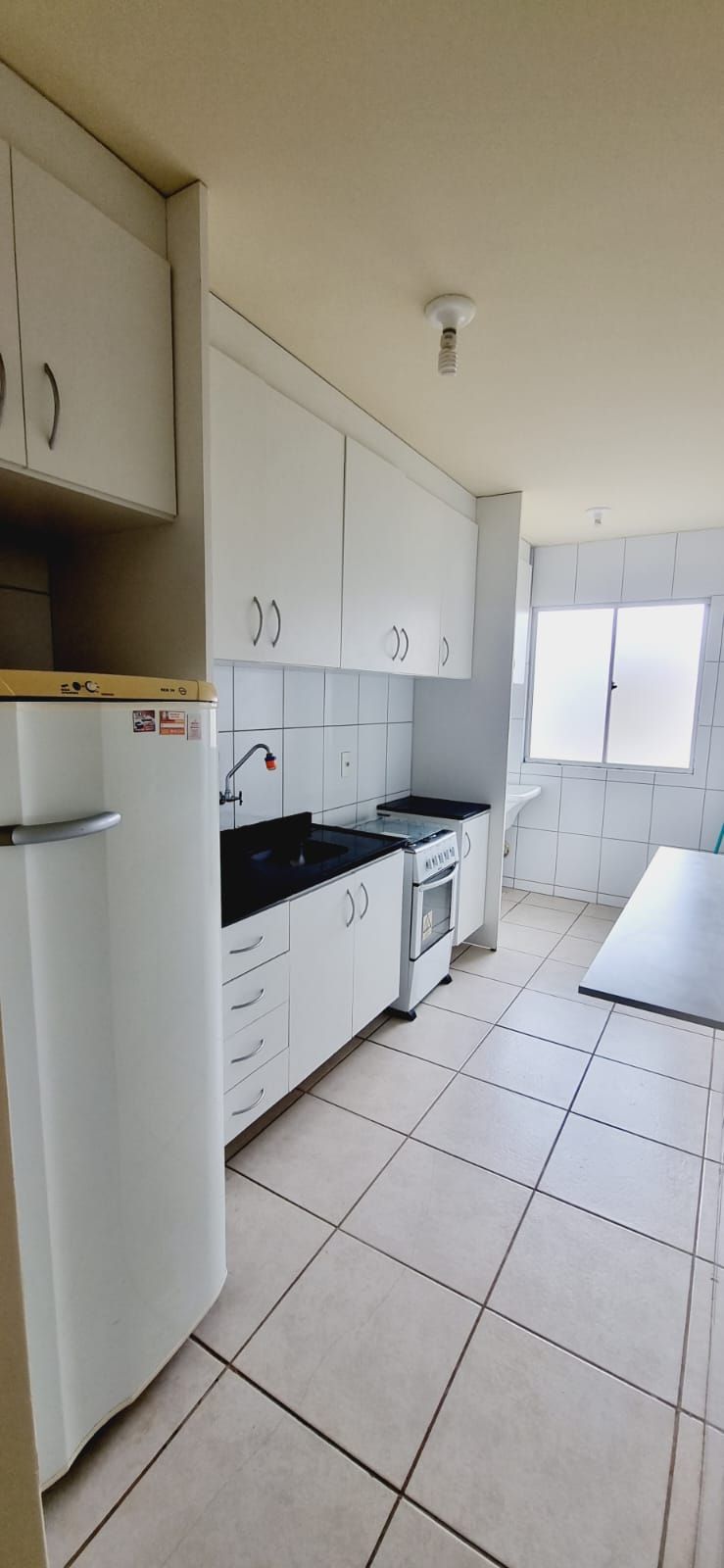Apartamento mobiliado no Condomínio Le Village Pitangui contendo: Sala para dois ambientes, sacada, banheiro, 02 quartos, cozinha com área de serviço e 01 vaga de estacionamento.