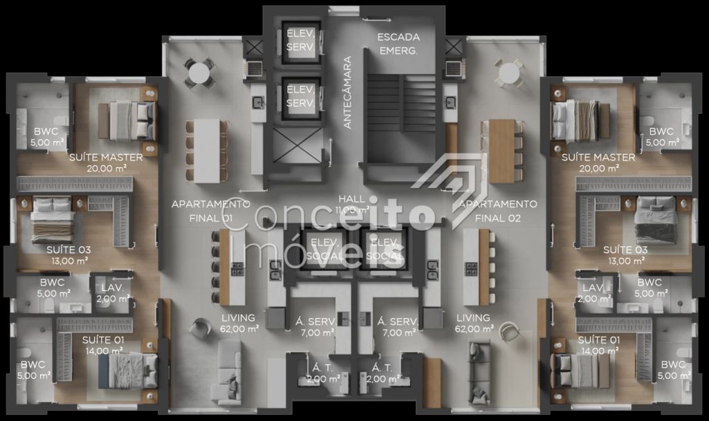 Apartamento de luxo no Centro de Balneário Camboriú, com localização estratégica a apenas 400 metros do mar. Com área de lazer que inclui piscina, lounge externo, espaço gourmet, salão de festas, academia e muito mais. São 160,21m² de área privativa distribuídos em 3 suítes (sendo uma suíte master), sala de estar, sala de jantar e cozinha integradas em amplo espaço, com 2 vagas de garagem.