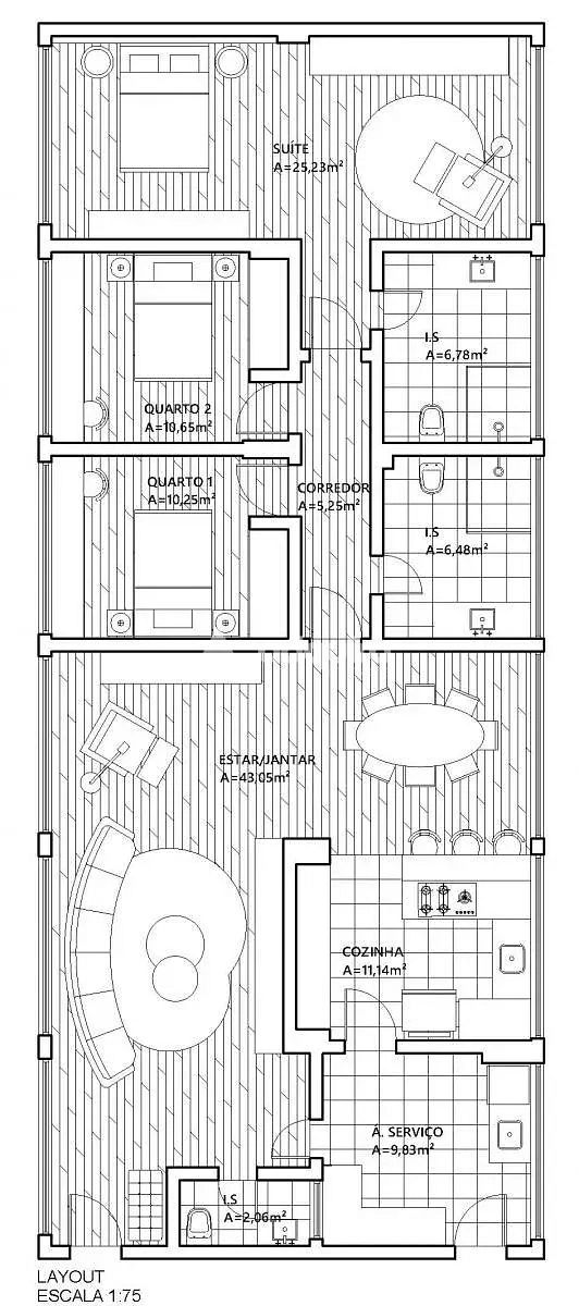 Área privativa: 145,93 m² Área total: 204,65 m².