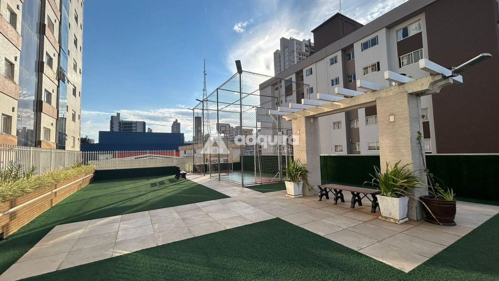 O edifício possui piscina com teto de vidro retrátil, salão de festas, sala de jogos, academia e quadra poliesportiva.
