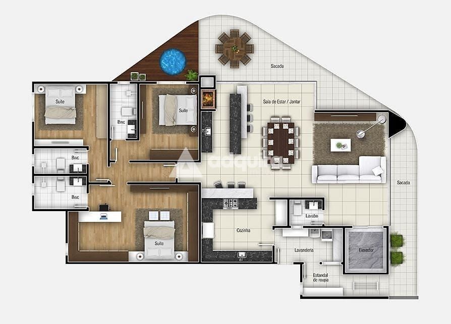 3 suítes, incluindo 1 suíte master