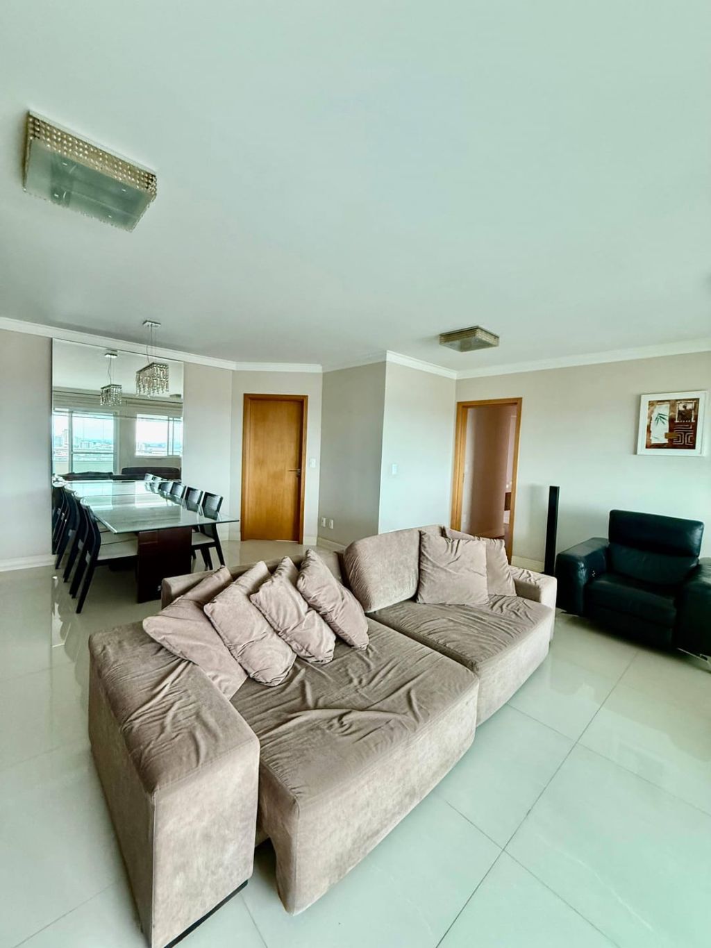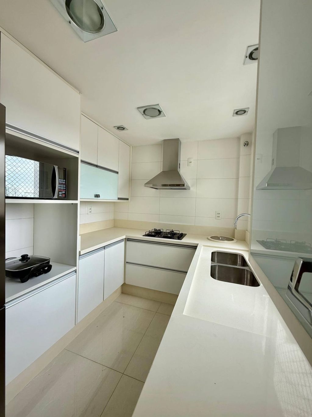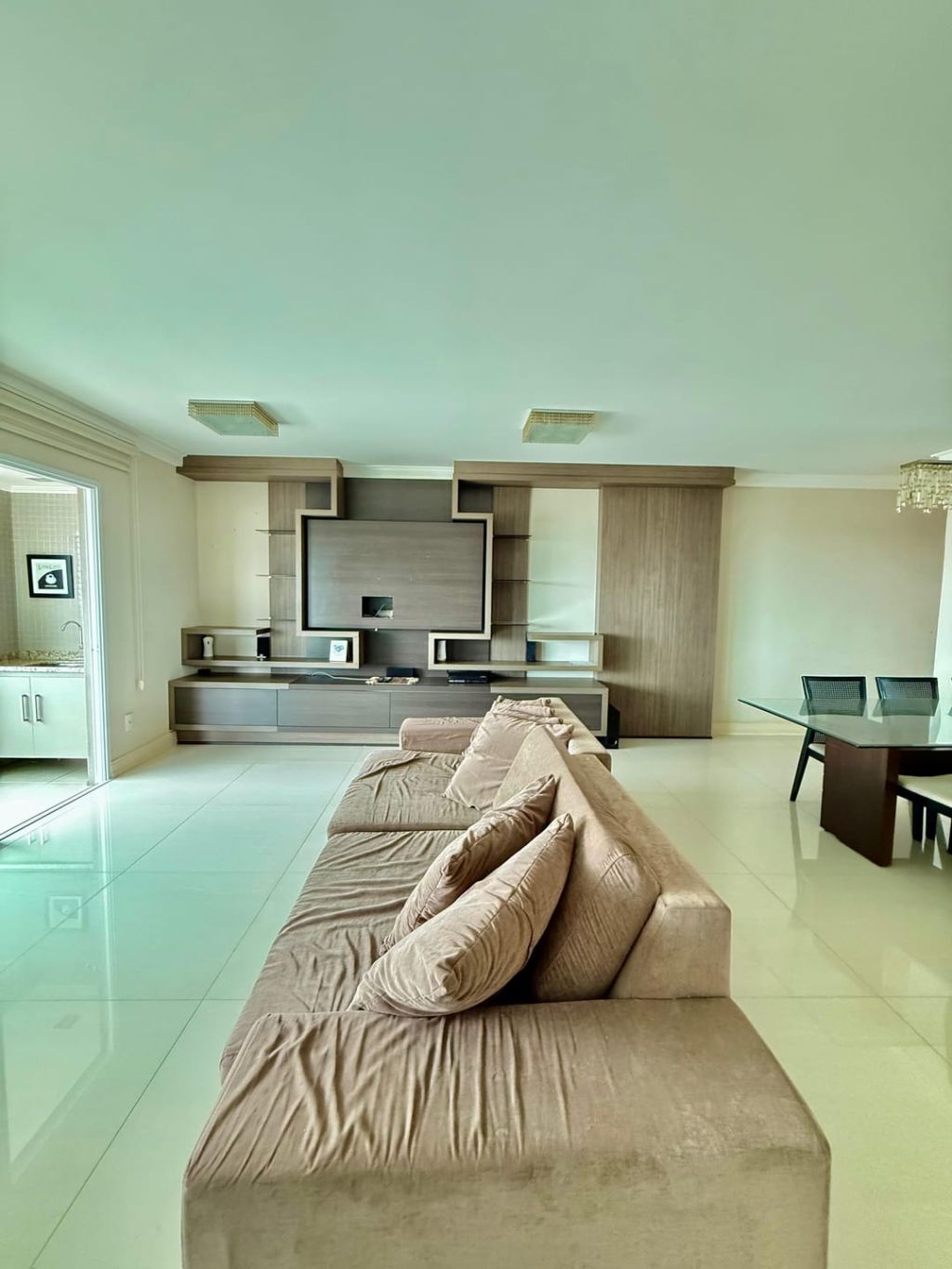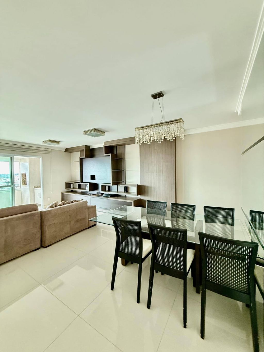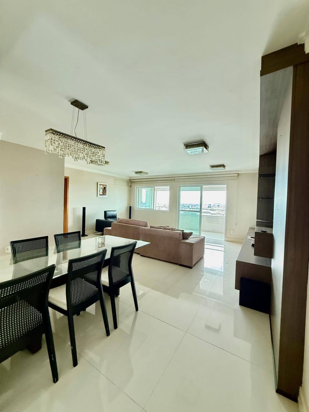 Excelente apartamento em andar alto e semi-mobiliado, contendo: 03 quartos com planejados e a suíte com cama, sala ampla para dois ambientes, integrando sala de jantar com mesa de 06 lugares e sala de TV com painel planejado, sofá e poltrona, sacada gourmet com churrasqueira fechada em vidro no estilo heike, banheiro social, cozinha separada com planejados, geladeira em inox de duas portas, cooktop com coifa, micro e grill, área de serviço com planejados e máquina de lavar e secar roupas e 01 vaga de garagem.