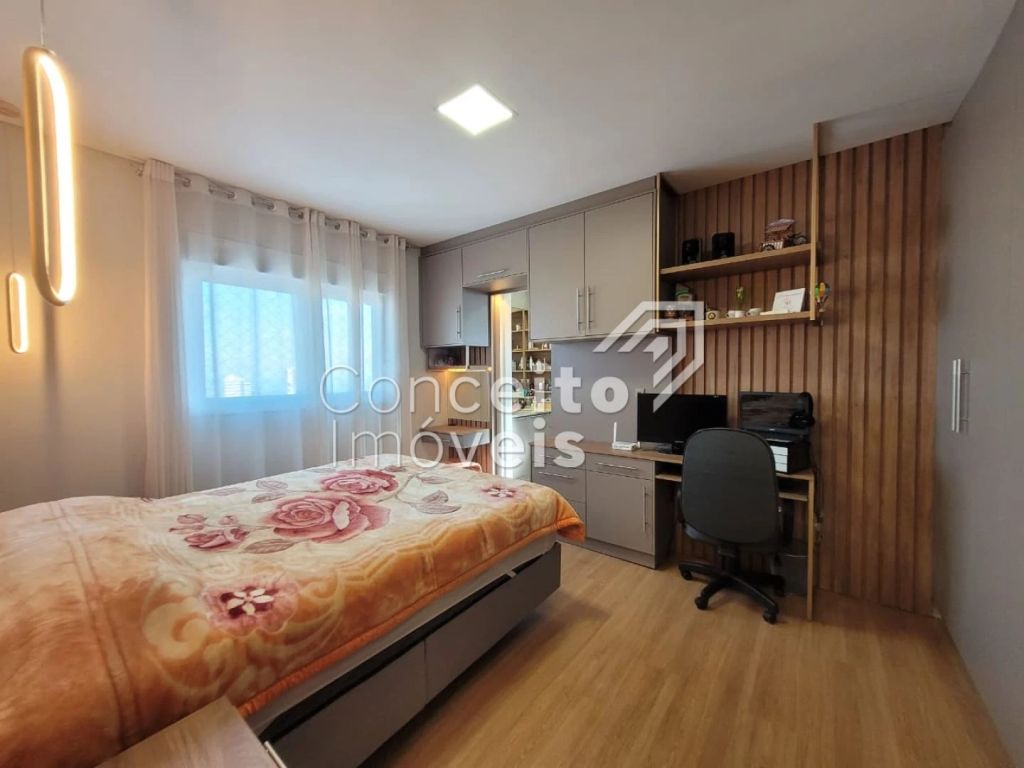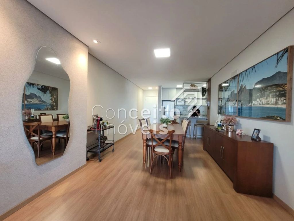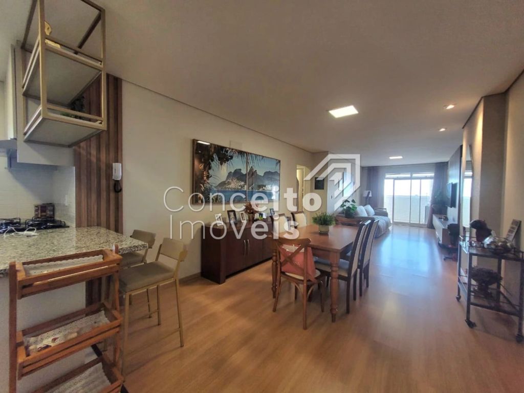 Excelente apartamento de andar alto com 3 dormitórios (Sendo 1 deles suíte), com guarda roupas planejados, sala de estar, sala de jantar com planejado, 1 banheiro social, cozinha com armários planejados de muito bom gosto, fogão cooktop e forno embutido lavanderia, sacada com churrasqueira e 2 vagas de garagem.