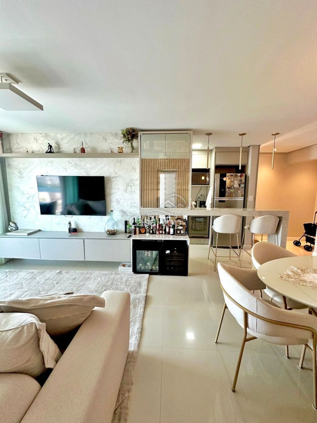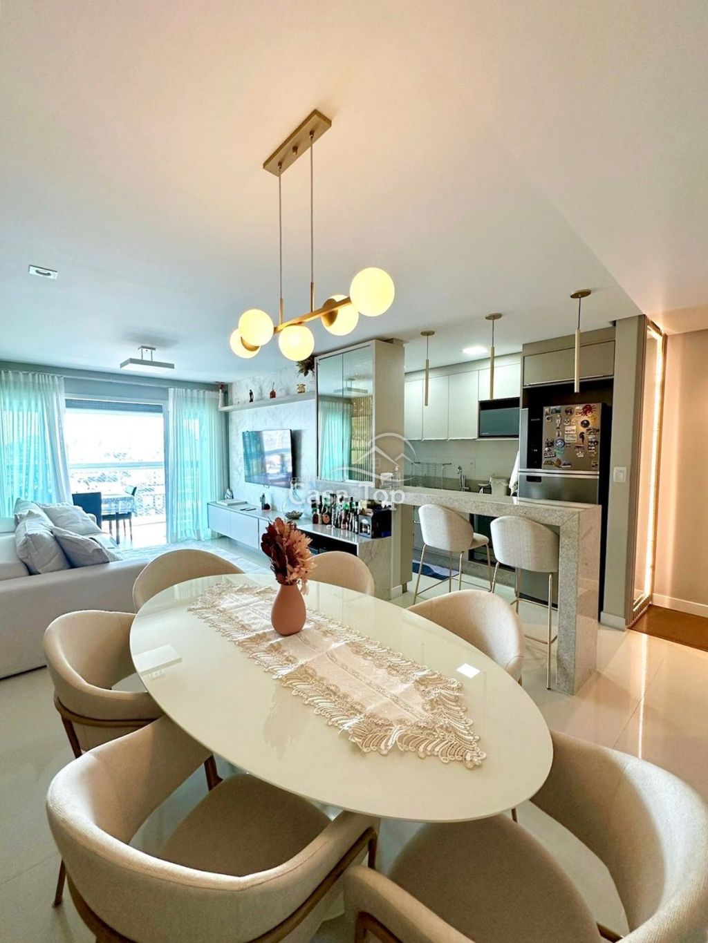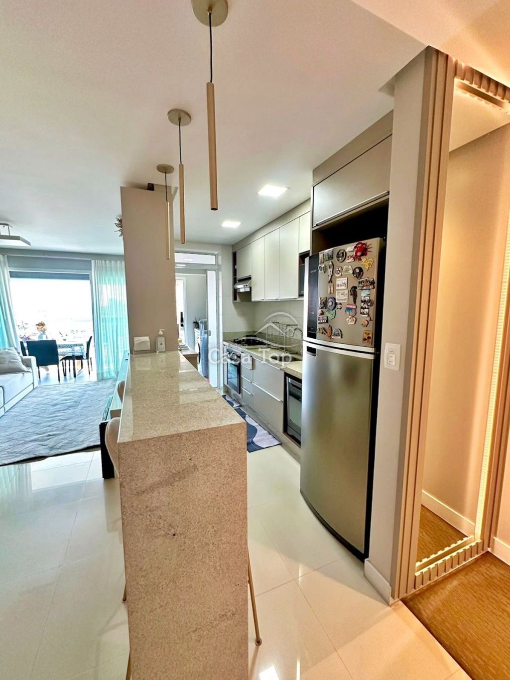 Apartamento Semimobiliado medindo aprox. 165,30m², contendo 2 quartos (sendo 1 suíte), sala para 2 ambientes, cozinha, sacada com churrasqueira, área de serviço, BWC social e 2 vagas de garagem.