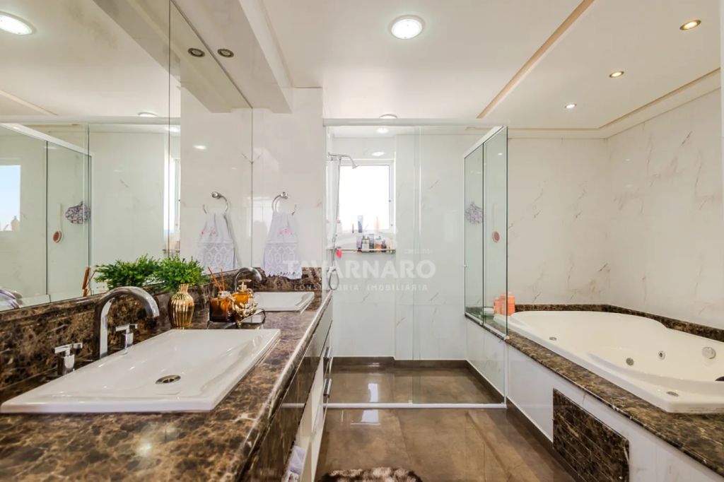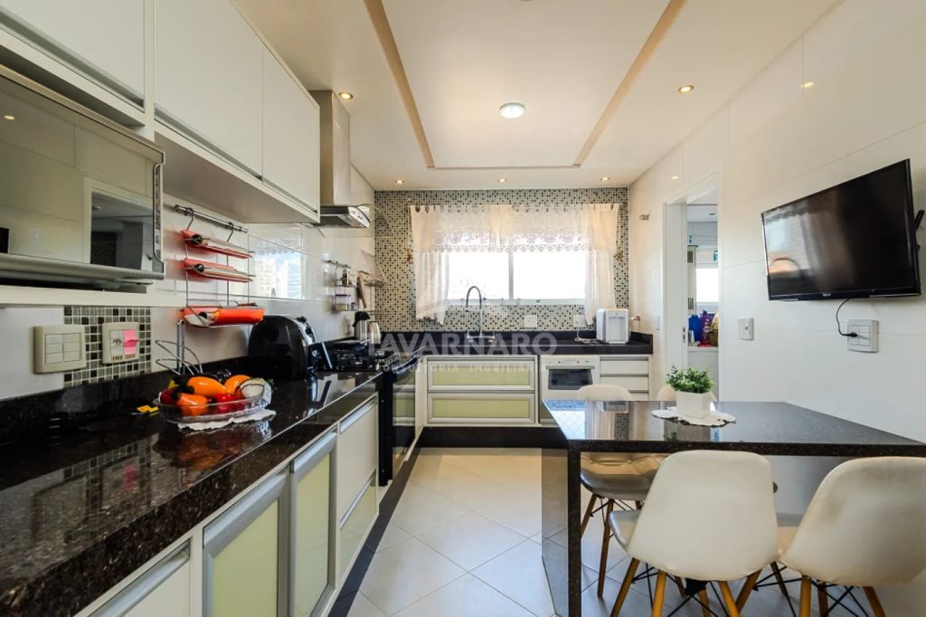Possui elevador que dá acesso ao Hall de entrada privativo do apartamento, sala de estar com lareira, sala de jantar, amplo espaço gourmet com churrasqueira. Cozinha, despensa e ampla lavanderia;