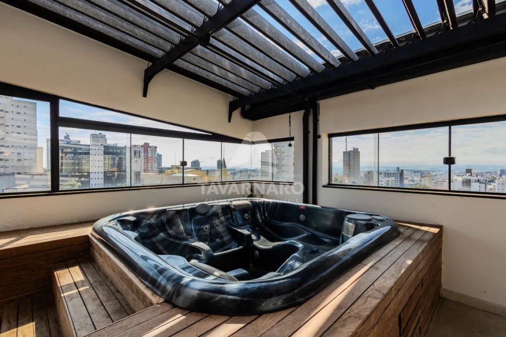 Para os momentos de lazer e bem-estar, a cobertura dispõe de um espaço gourmet completo com churrasqueira e de um spa privativo, criando o cenário ideal para receber convidados com exclusividade ou desfrutar de momentos de relaxamento em família.