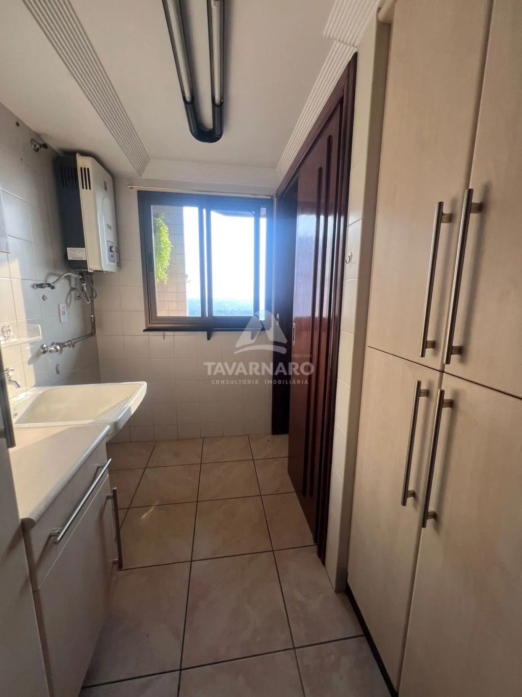 São 2 quartos, sendo 1 ampla suíte com closet, sala de estar e jantar, ampla sacada, banheiro, cozinha e área de serviço.