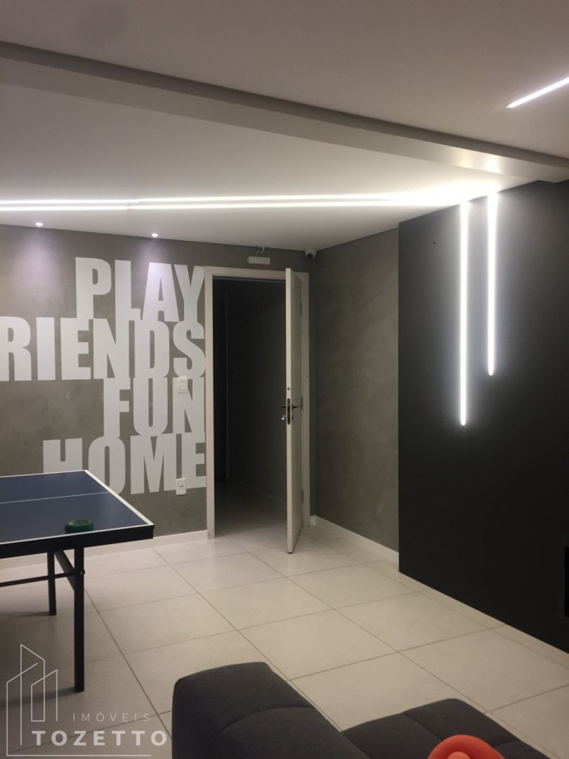 Disposto em 02 dormitórios (sendo 1 suíte), sala, banheiro social, cozinha, área de serviço, sacada com churrasqueira, lavanderia e 1 vaga de garagem