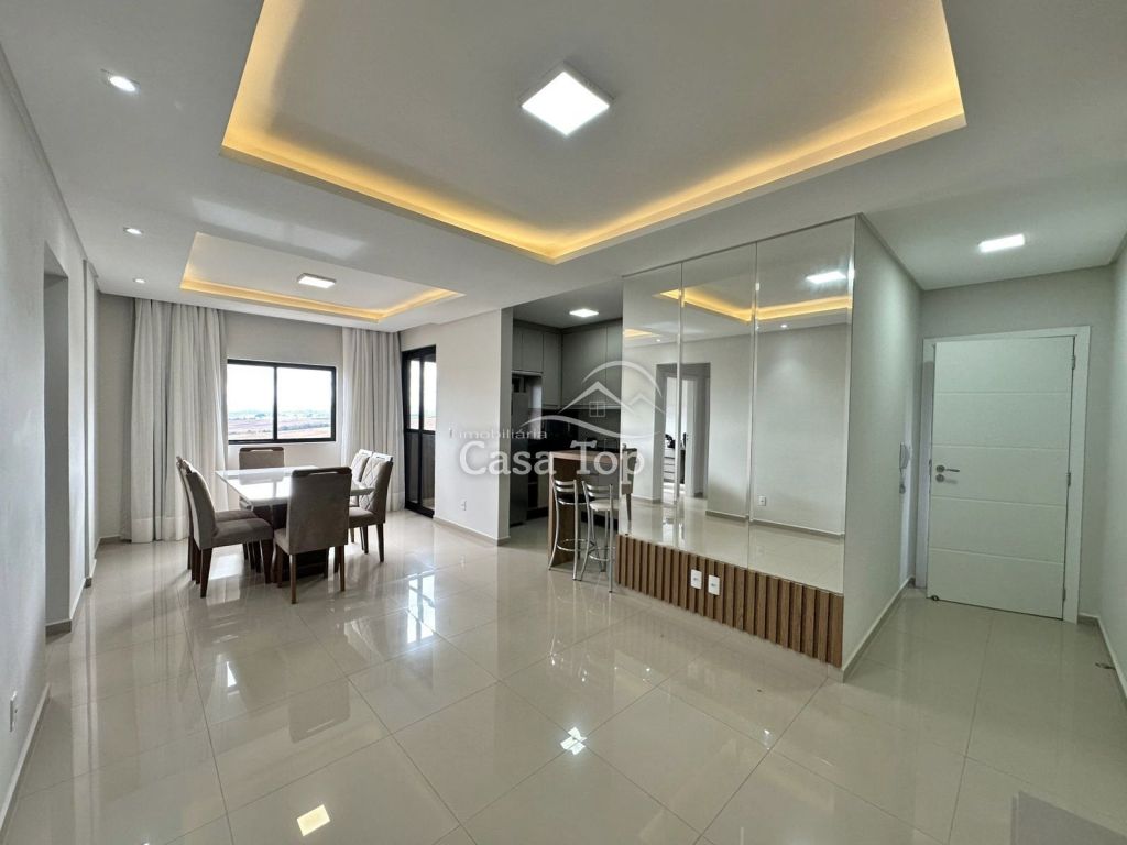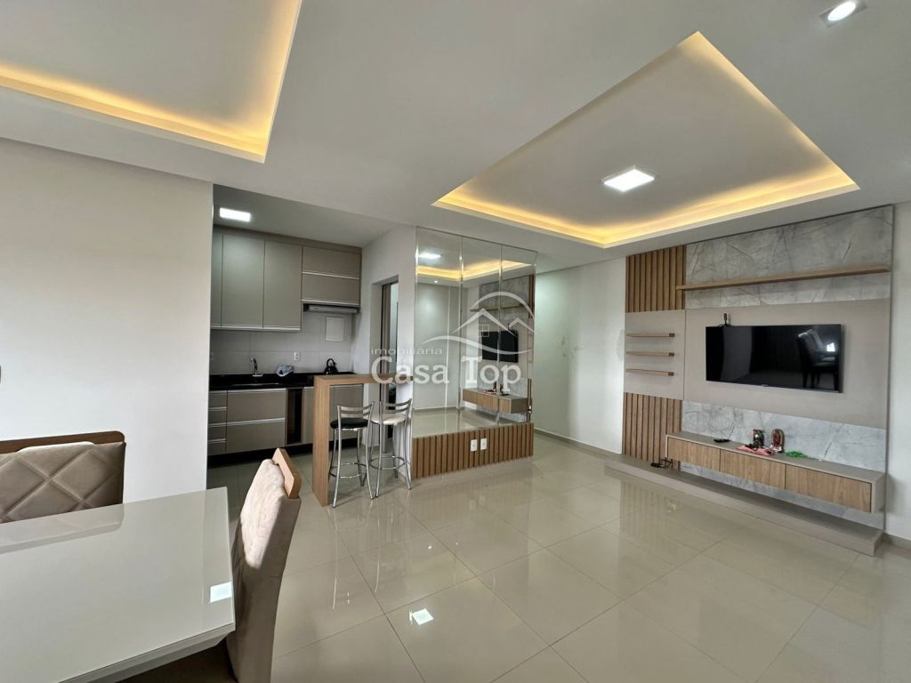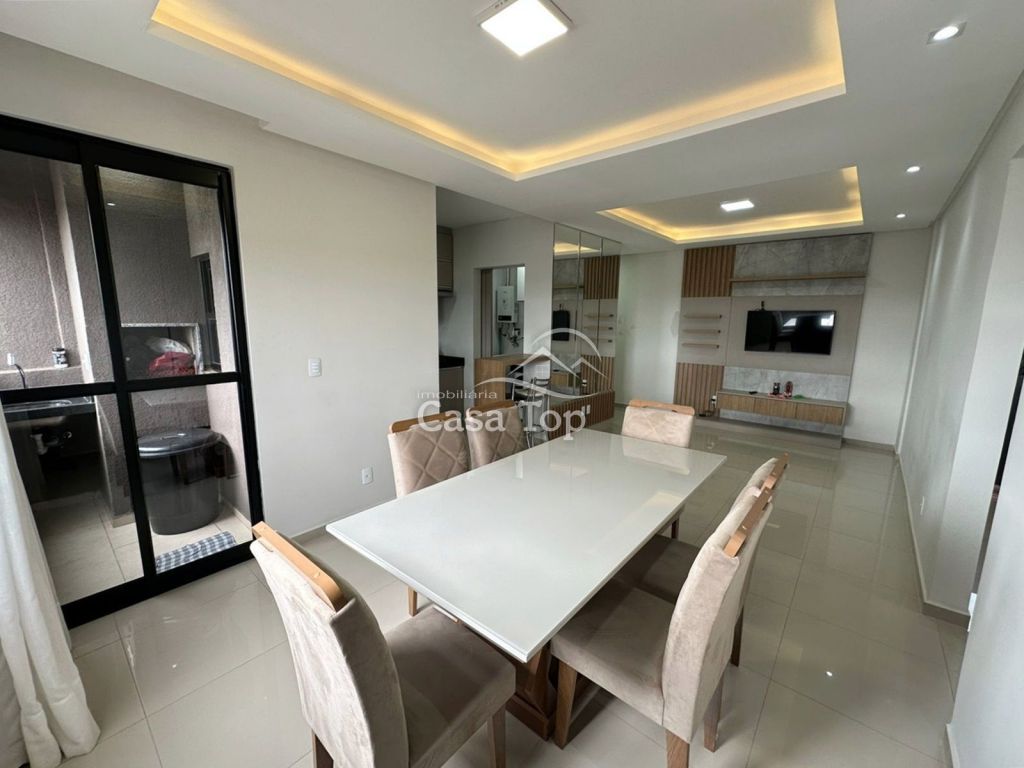 Apartamento medindo 83,94m², contendo 3 quartos (sendo 1 suíte) sala para 2 ambientes com sacada e churrasqueira, cozinha, área de serviço, BWC social e 2 vagas de garagem.