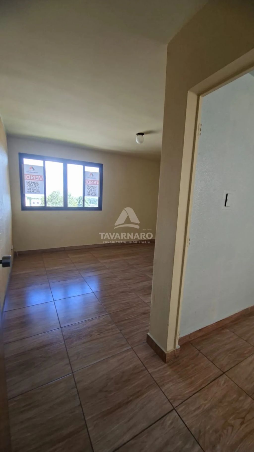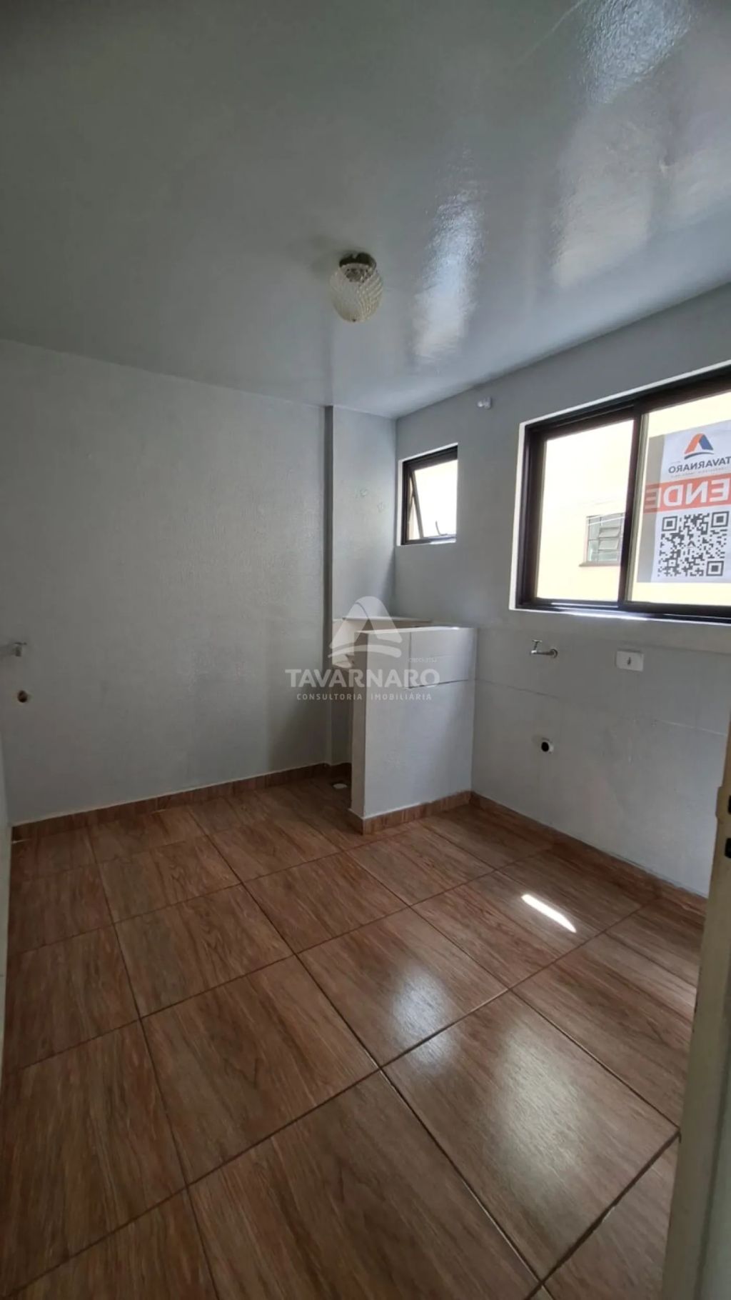3 dormitórios, sala, cozinha, banheiro, área de serviço e vaga de estacionamento.