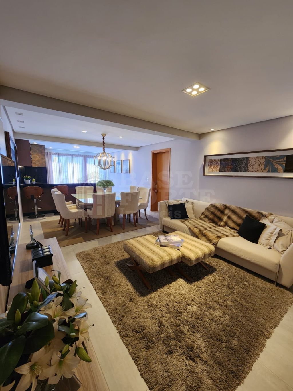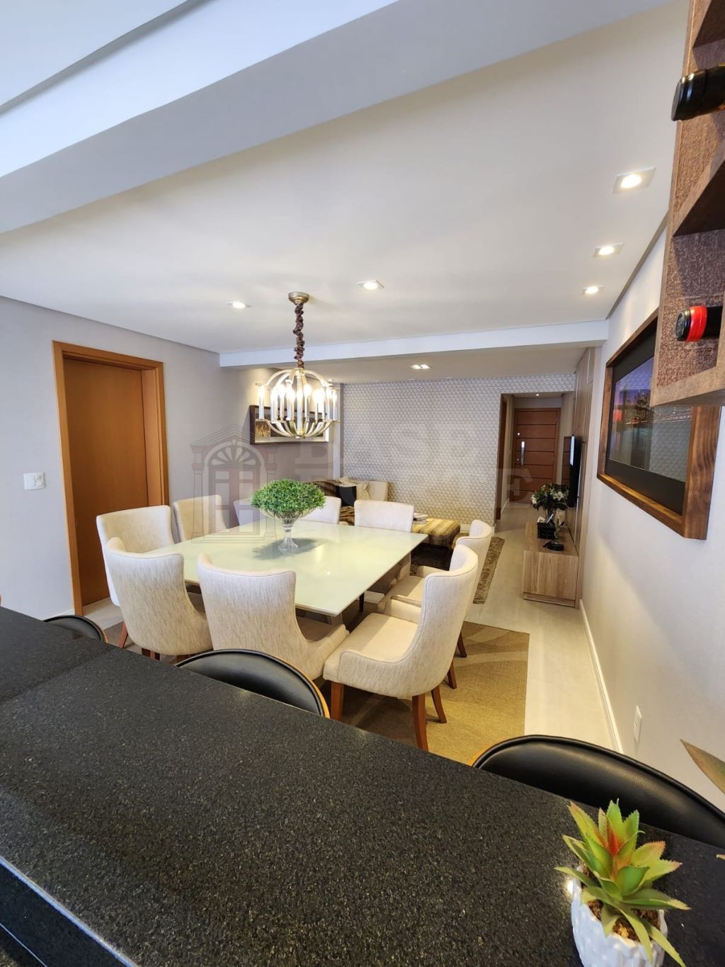Apartamento contendo 3 quartos (sendo 1 suíte), banheiro social, amplas sala de estar e jantar integradas ao espaço gourmet, cozinha aberta, lavabo, área de serviço e 2 vagas de garagem.