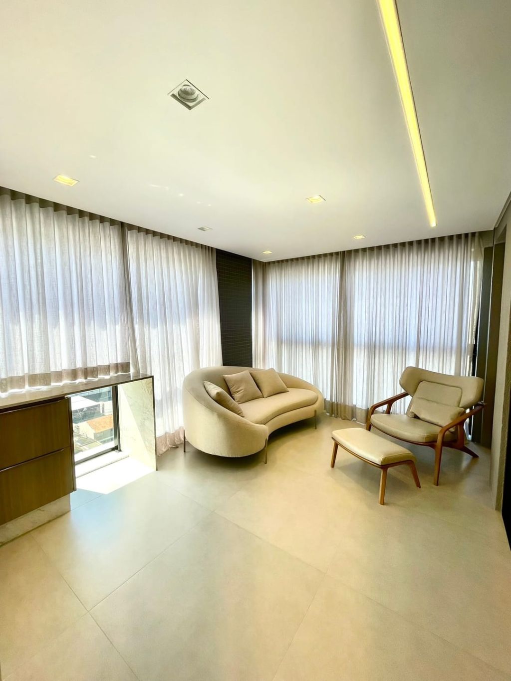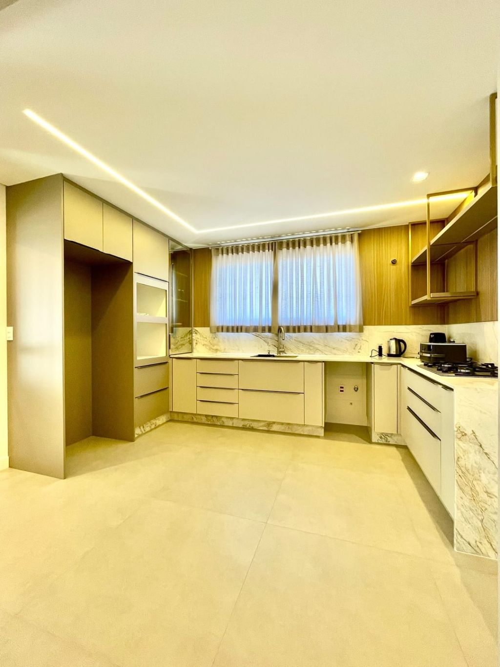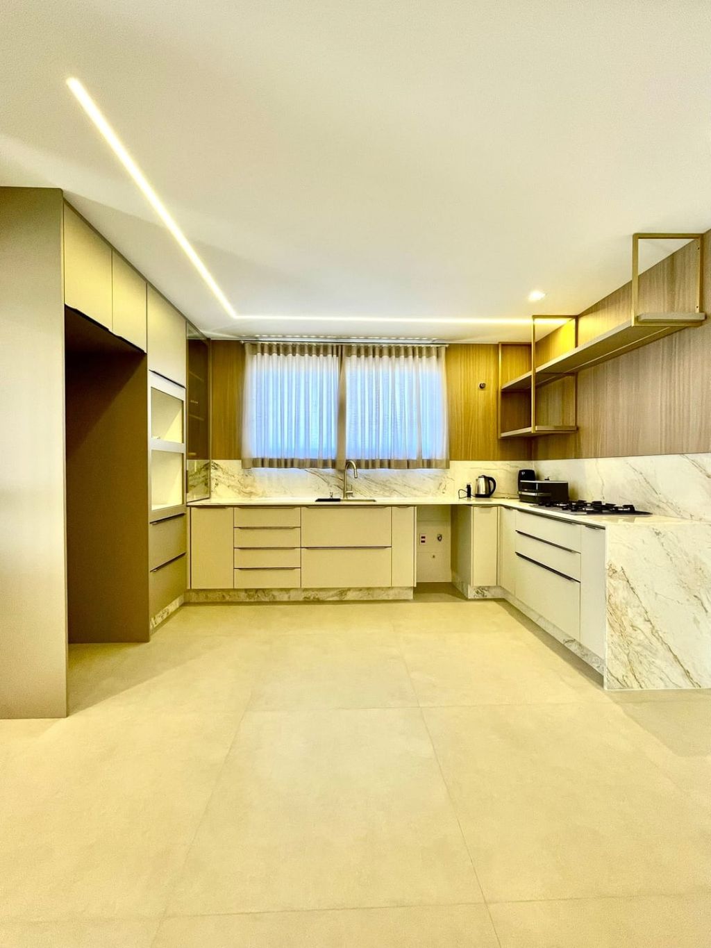 - Porcelanato nas salas e cozinha, piso vinilico nos quartos.