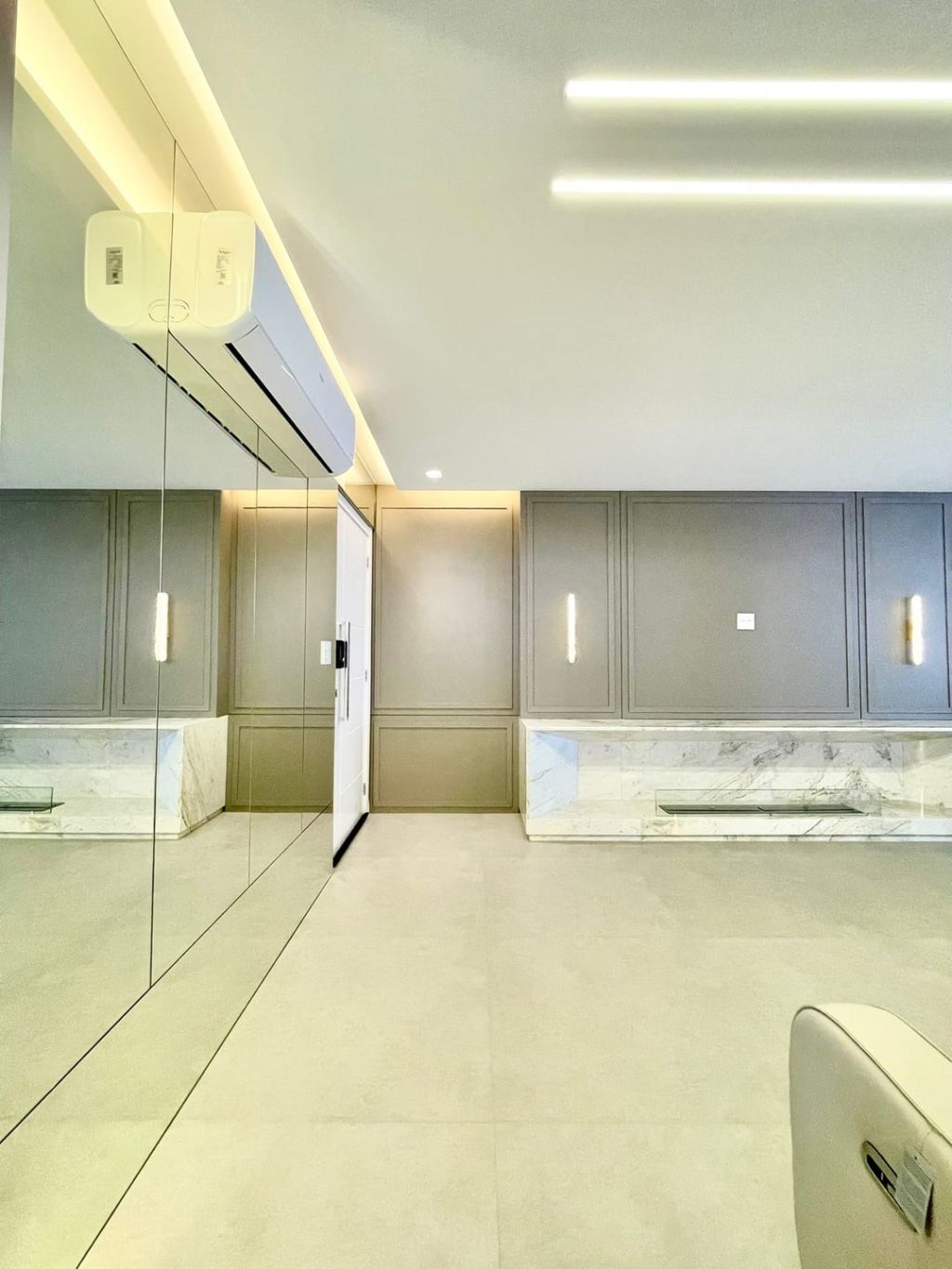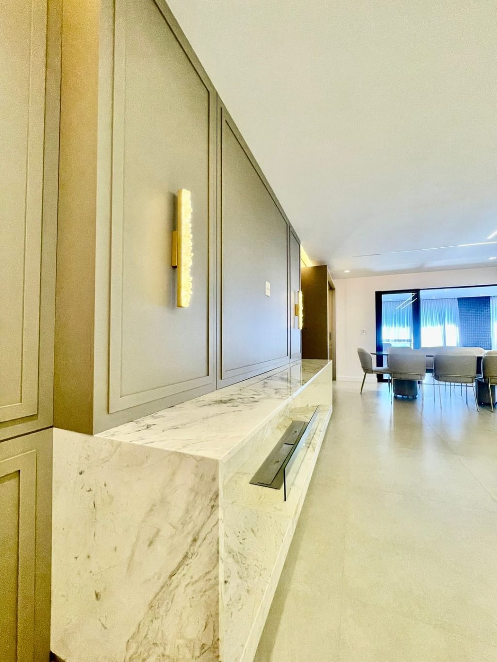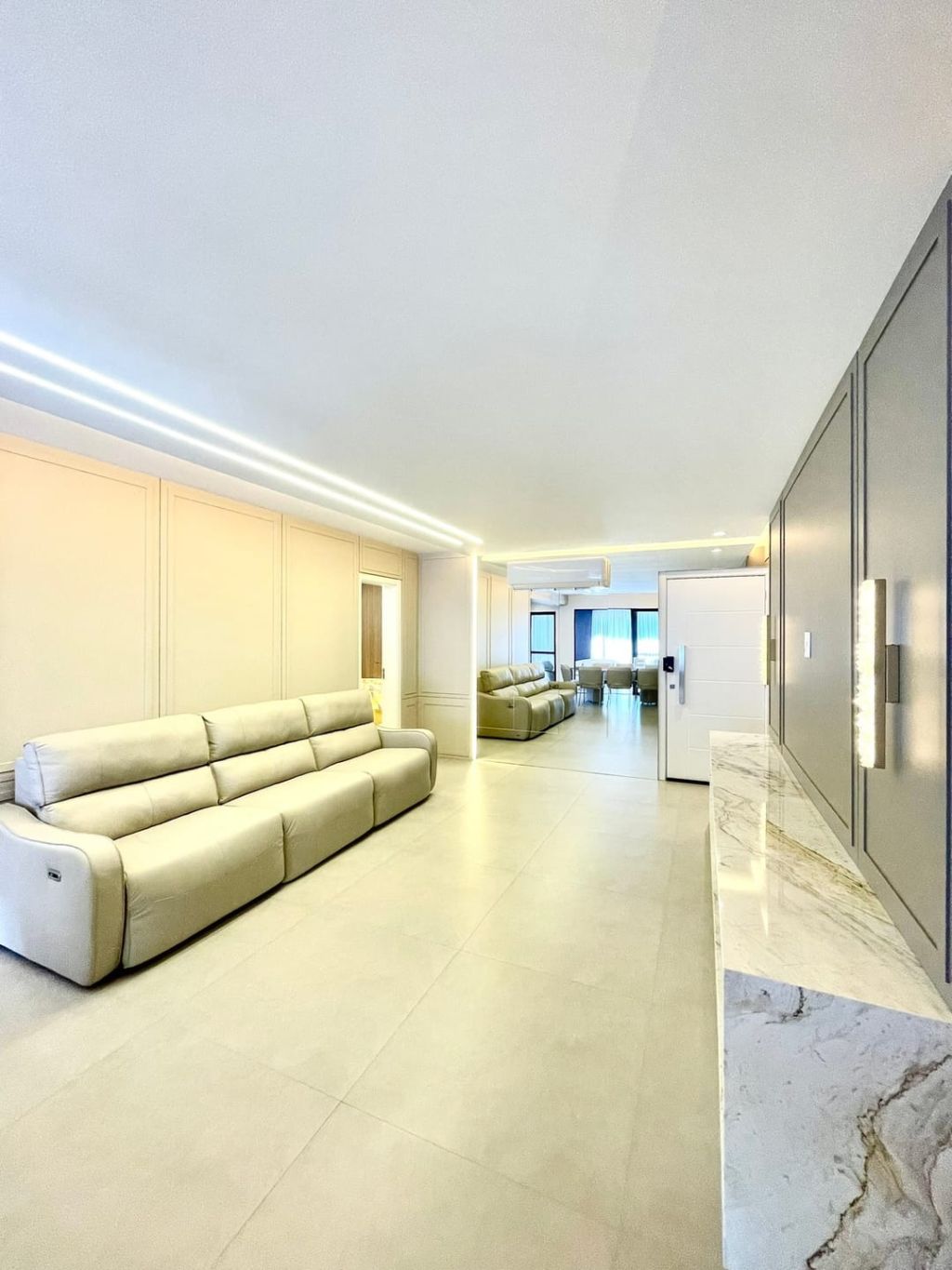 - Porcelanato nas salas e cozinha, piso vinilico nos quartos.