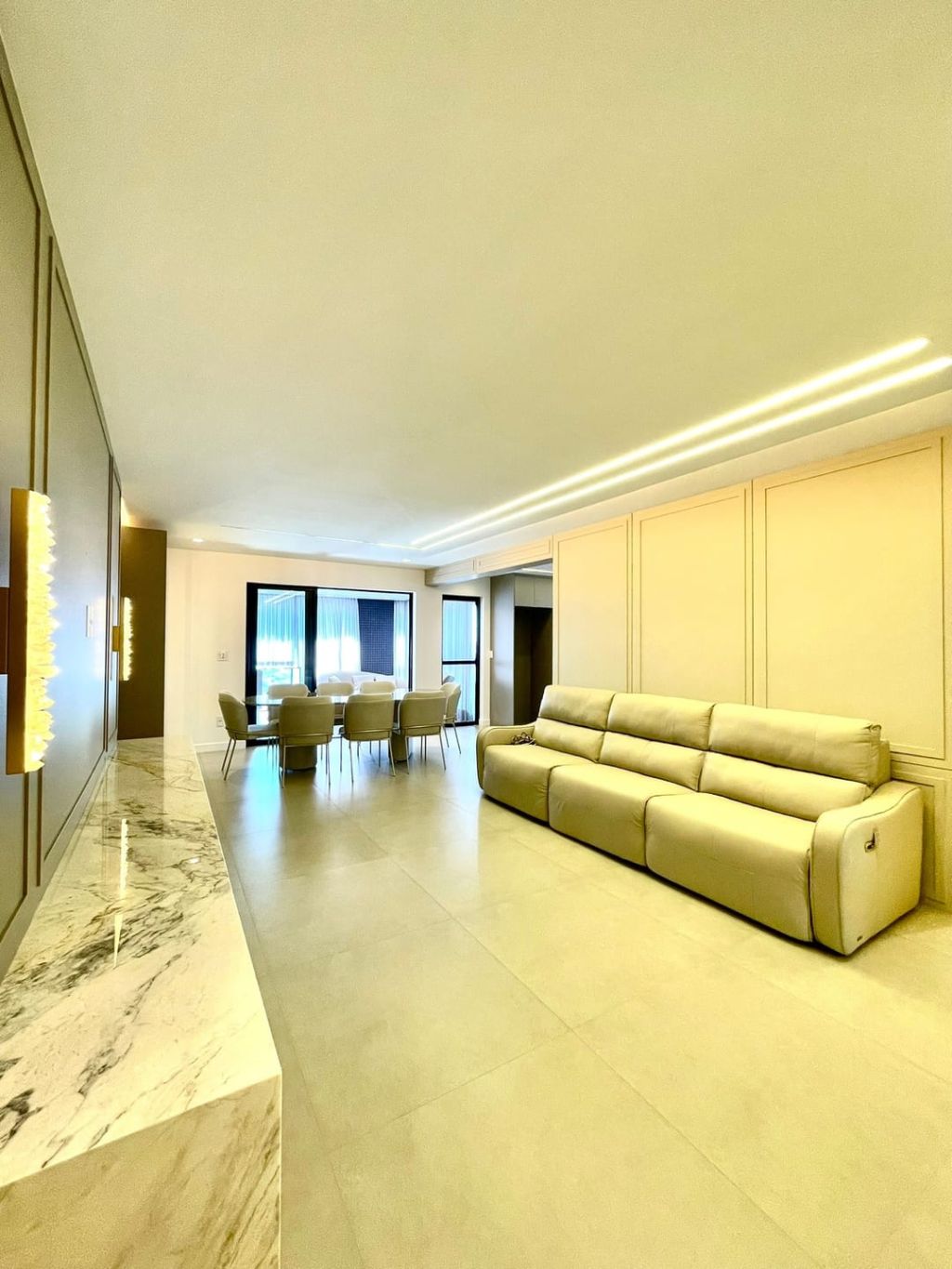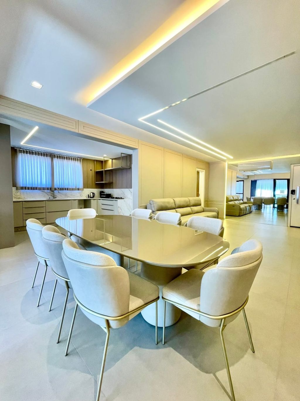 São 03 suítes, todas elas com armários planejados (sendo 01 master com closet), ampla sala de estar integrada à sala de jantar, sacada gourmet espaçosa e ensolarada, lavabo, cozinha planejada, área de serviço com armários planejados e duas vagas de garagem.
