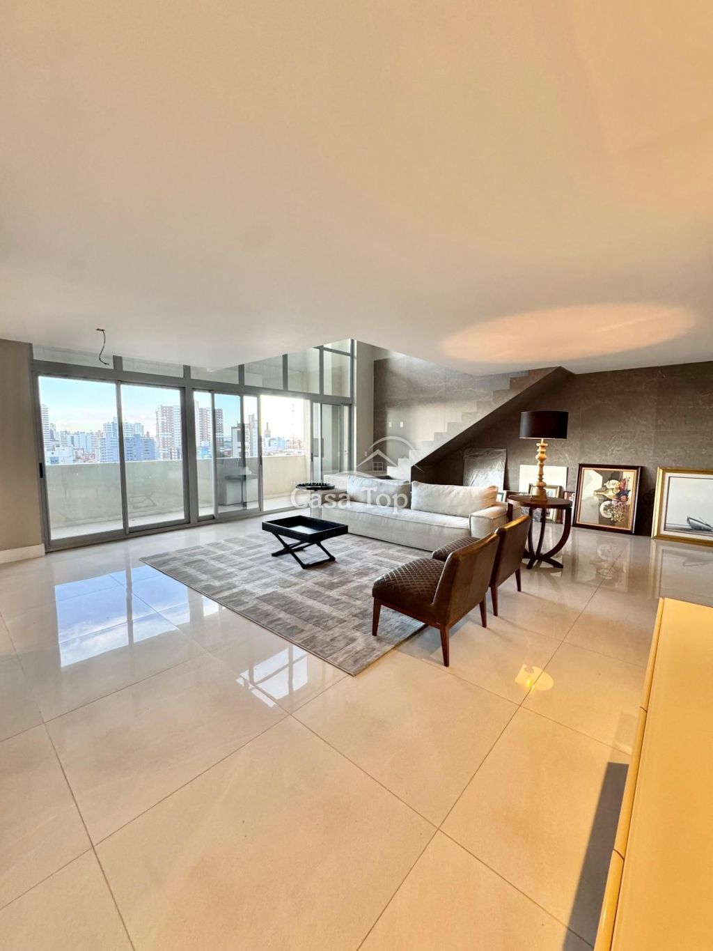 Apartamento sduplex medindo aprox. 512,34m², contendo 3 suítes, sala íntima, ampla sala para 2 ambientes integrado com o espaço gourmet e cozinha, sacada com churrasqueira, área de serviço, lavabo e 4 vagas de garagem.
