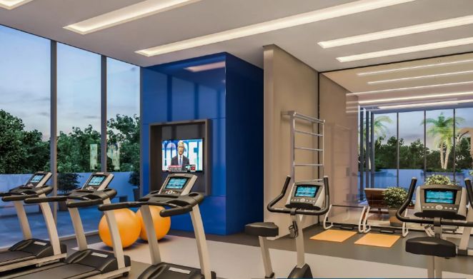 Um apartamento contendo 02 dormitórios sendo, sala, copa, cozinha, lavabo sacada com churrasqueira e 01 vaga de garagem.
