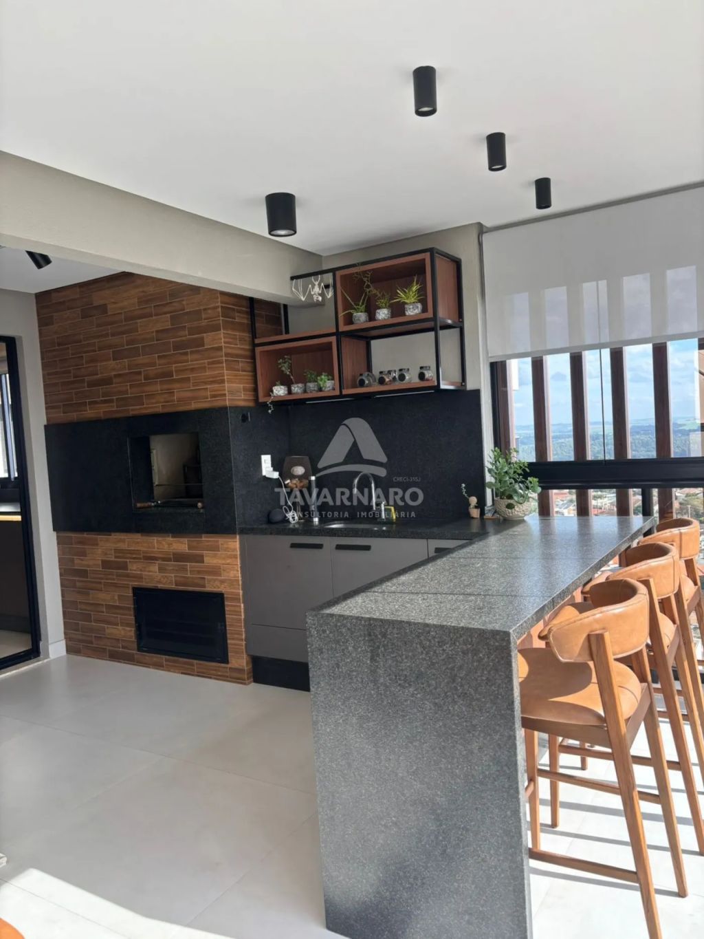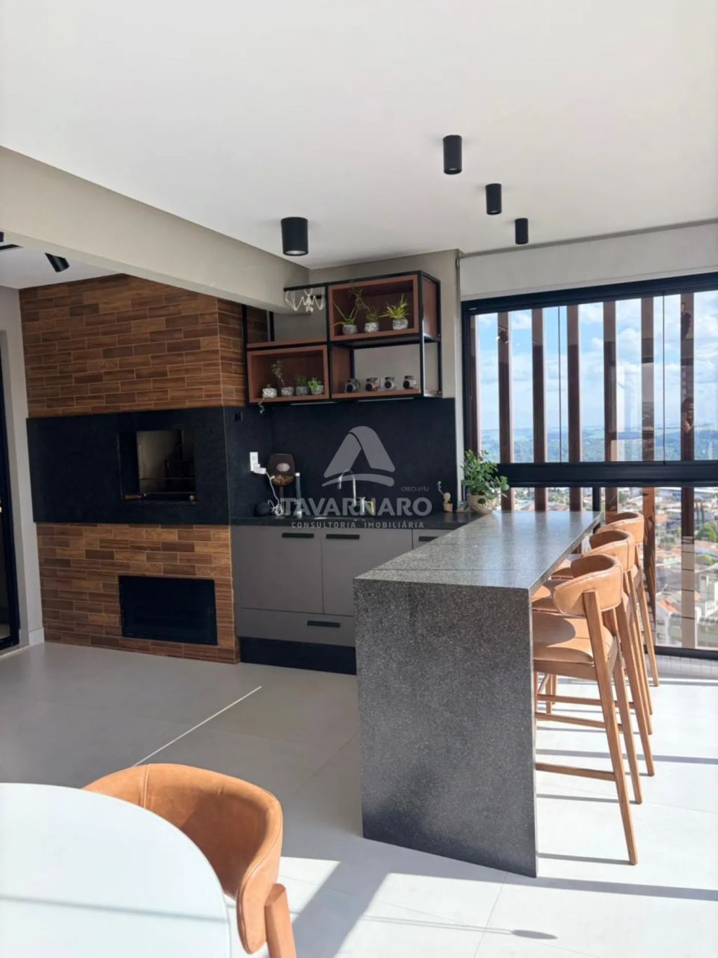 Área gourmet com churrasqueira e sacada, ideal para receber