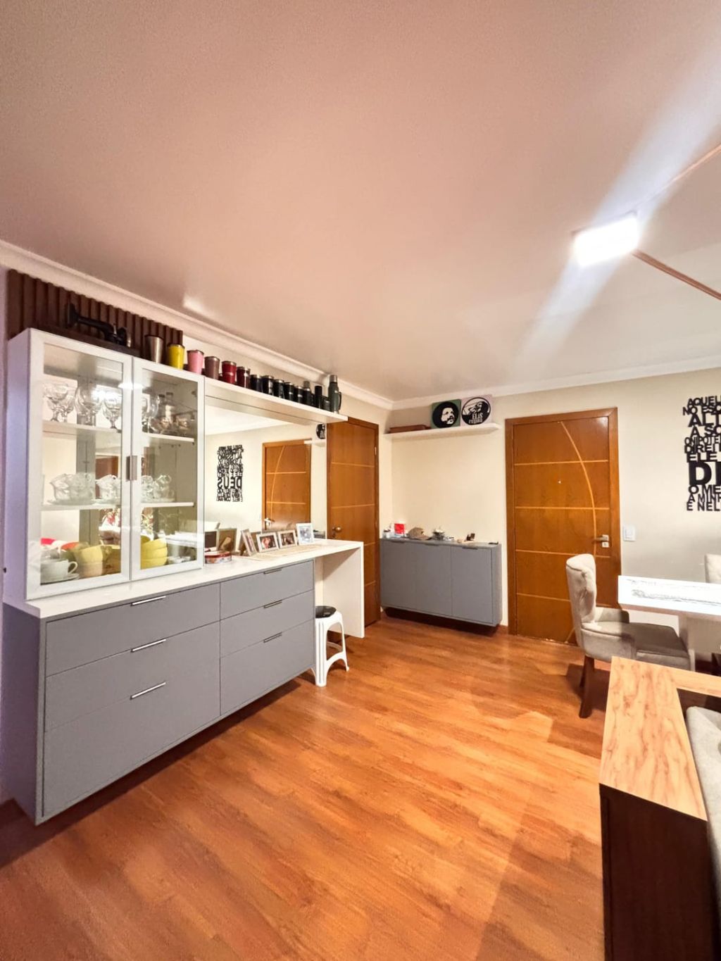 Excelente apartamento reformado e semi-mobiliado no bairro mais queridinho da cidade, contendo: 02 quartos sendo 01 deles com planejados, escritório com mesas, cozinha com armários planejados e cooktop, lavanderia com planejados, banheiro social com box blindex, sala de estar e jantar integradas com mesa, painel de TV e cristaleira e 01 vaga de garagem.