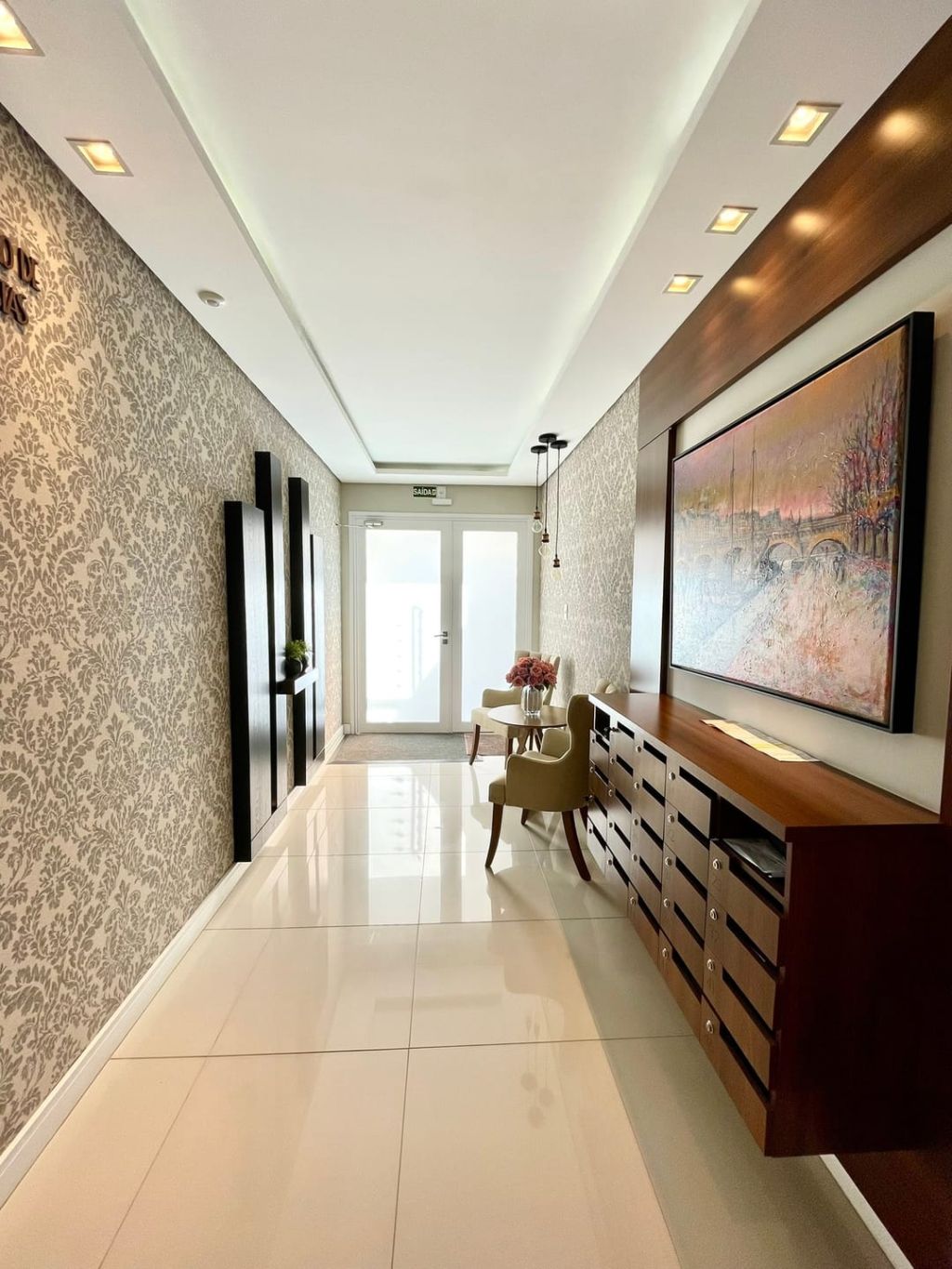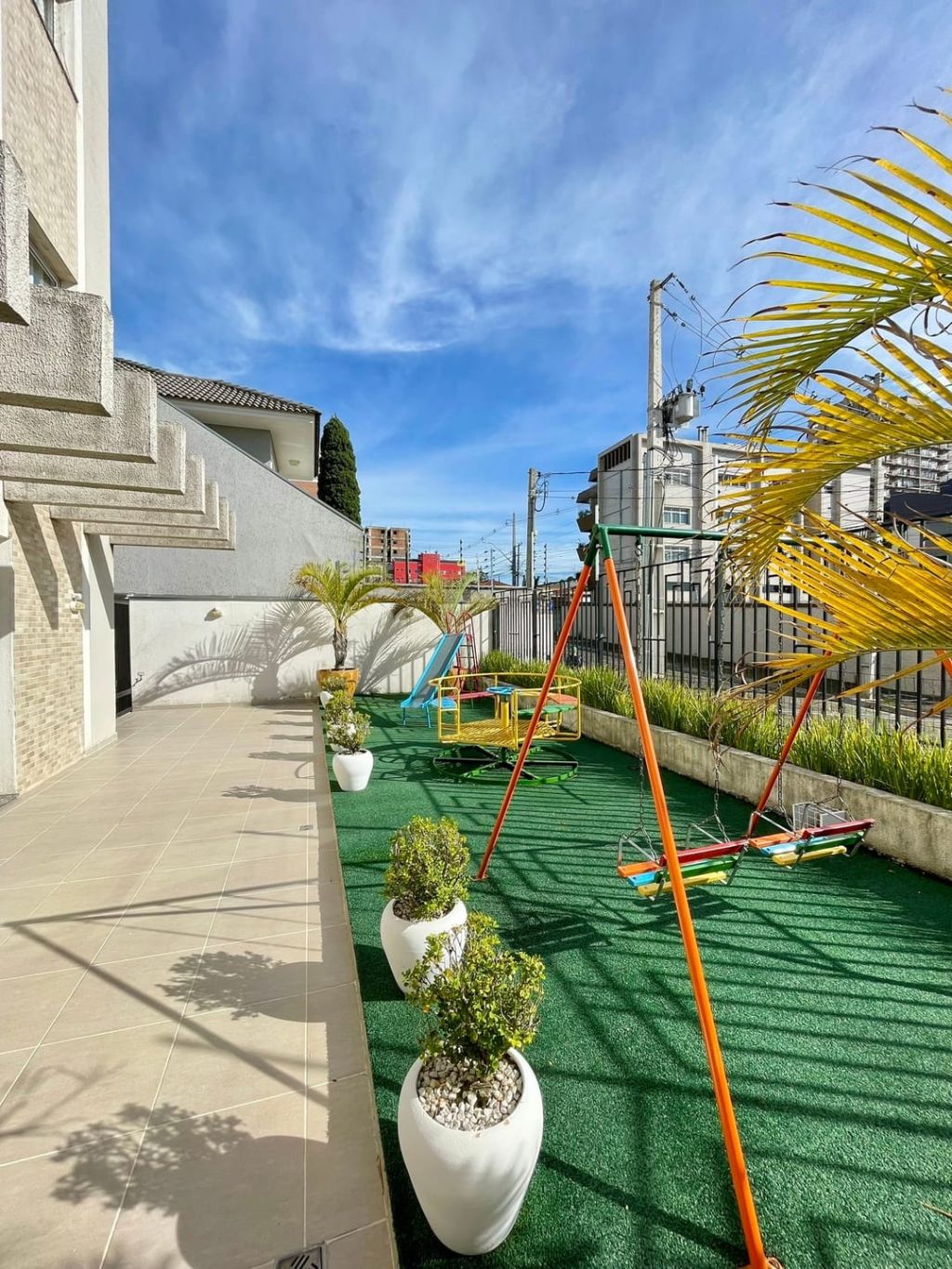 O condomínio dispõe de hall de entrada, salão de festas e espaço de playground.