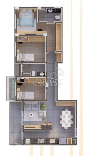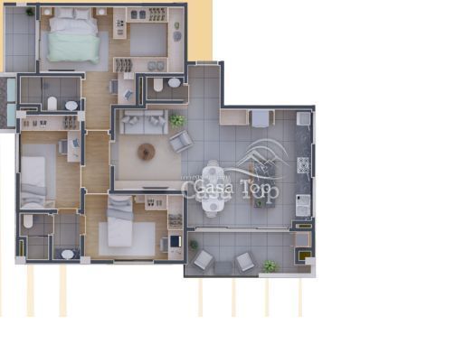 Apartamento no Edifício Dom medindo aprox. 122,74m², contendo 3 quartos (sendo 1 suíte), sala para 2 ambientes, cozinha, BWC social, área de serviço e opção de 1 ou 2 vagas de garagem.