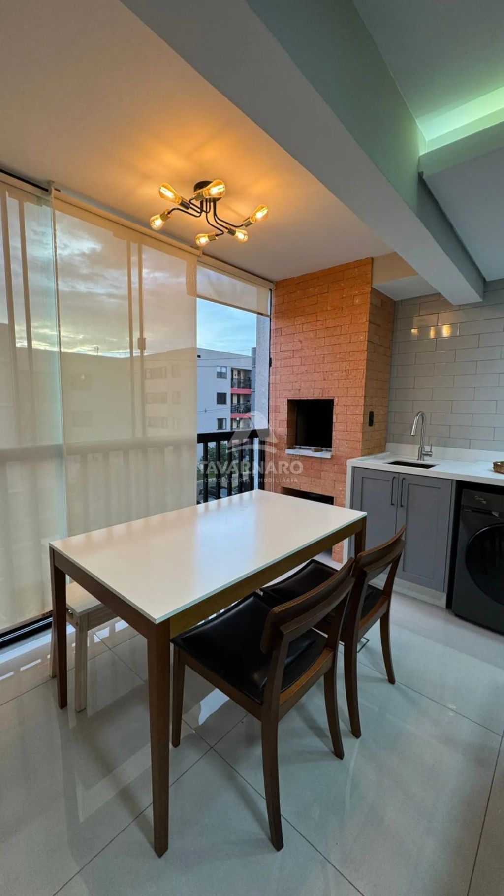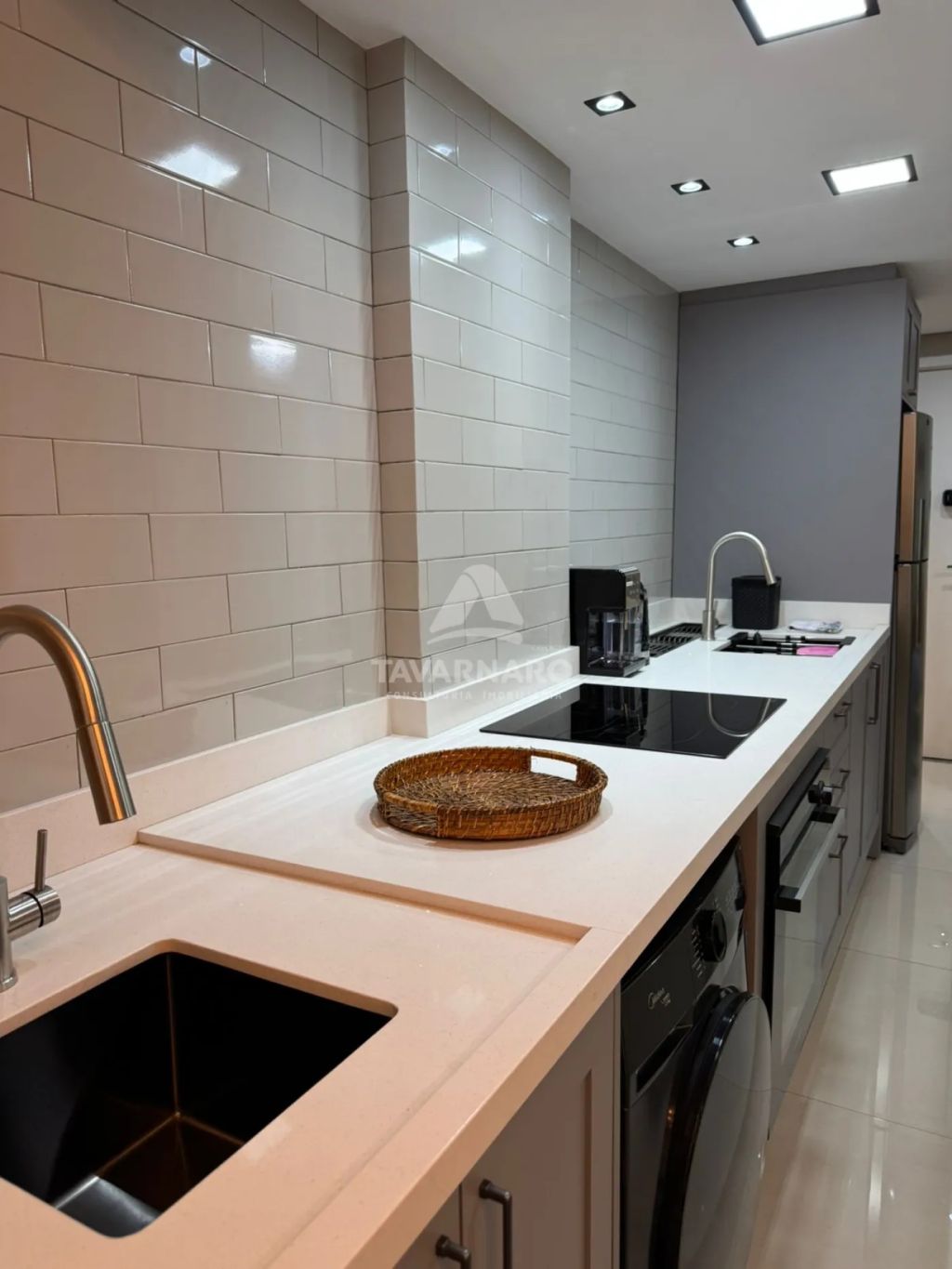 Móveis em MDF com iluminação em LED, fogão de indução, forno a gás, geladeira inox, sofá de couro legítimo, box de banheiro até o teto, bacia sanitária nova, airfrye, microondas, cafeteira, liquidificador, mixer, copos, taças, talheres, pratos, panos de prato, toalhas, roupa de cama e etc.