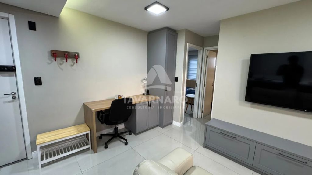 Com mobília de excelente qualidade, eletros novos, persianas, todo reformado, piso em porcelanato, rebaixamento em gesso com iluminação, sacada integrada toda fechada em vidro.