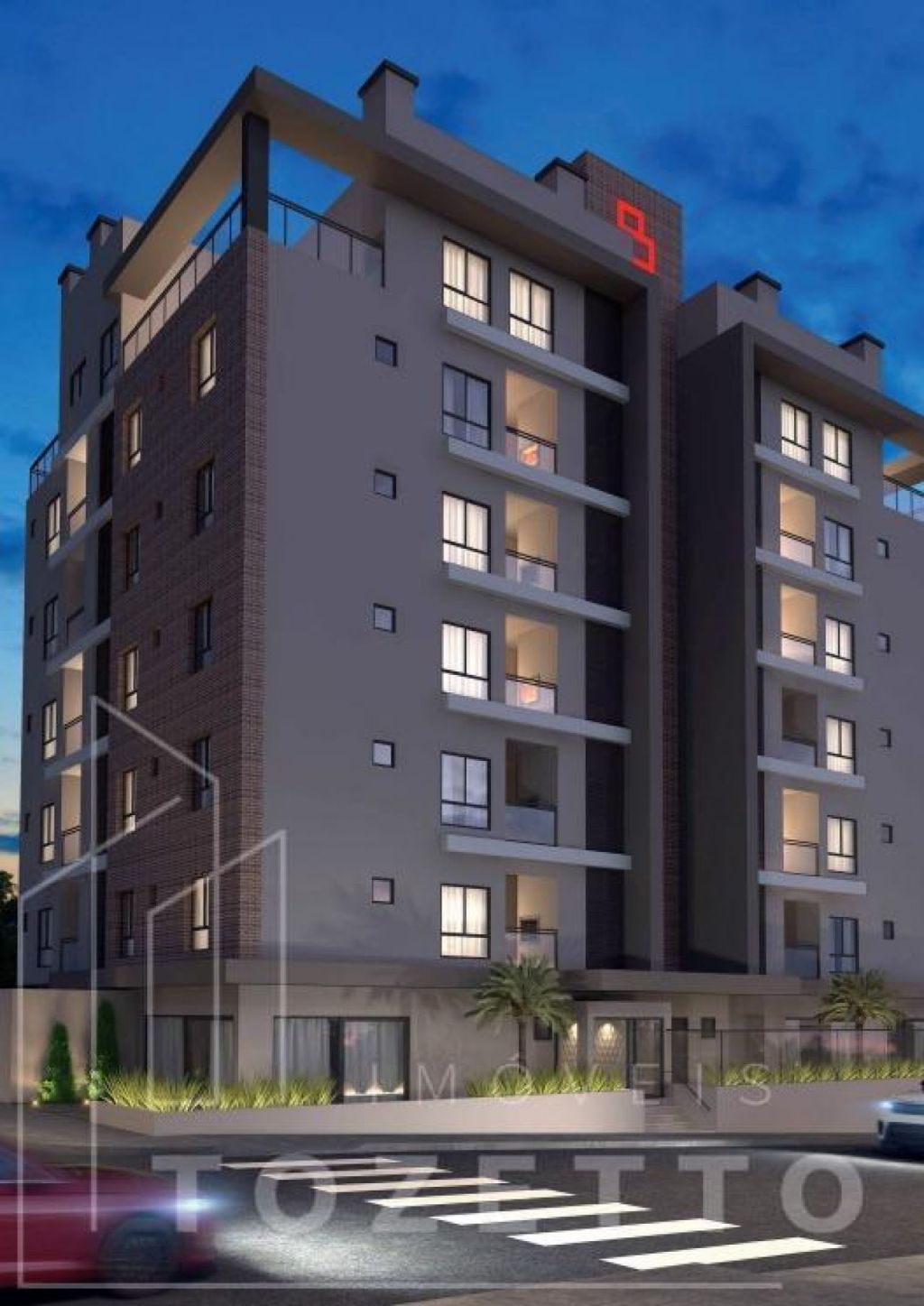 Torre única, 8 pavimentos com 25 unidades exclusivas e 5 apartamentos por andar.