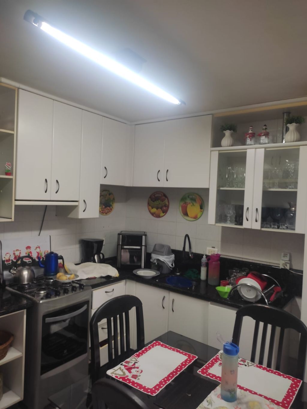 Um apartamento contendo 03 dormitórios sendo uma suíte, sala, cozinha, 01 banheiro social, área de serviço, 01 vaga de garagem e terraço