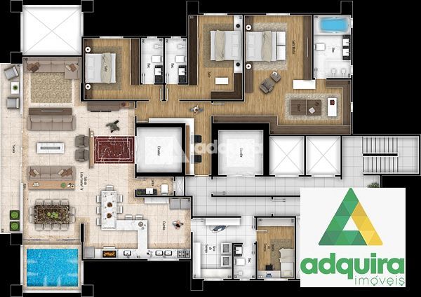 Apartamento à venda 3 Quartos, 3 Suites, 3 Vagas, 629M², Oficinas, Ponta Grossa - PR