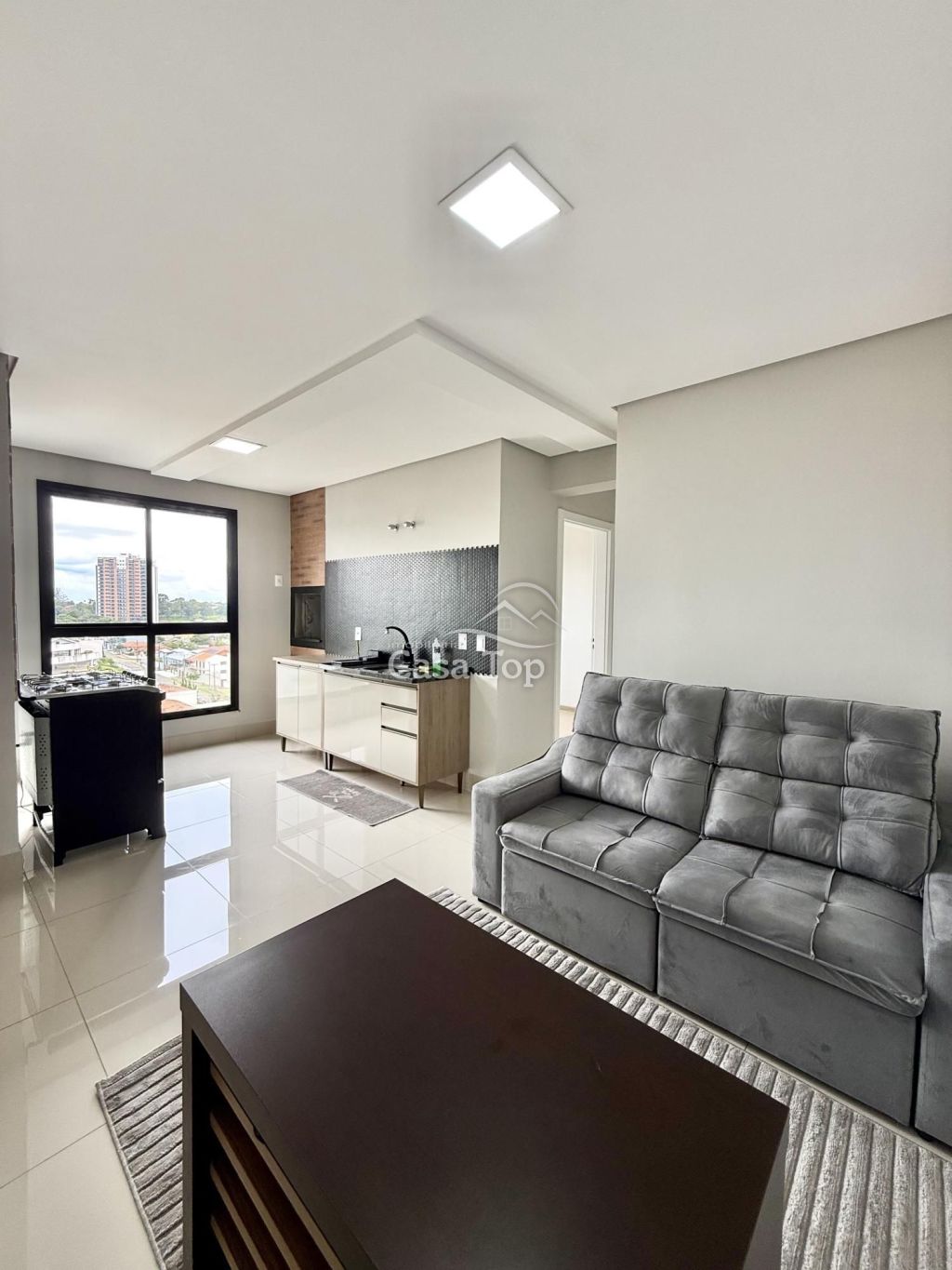 Apartamento medindo aprox. 106,79m², contendo 2 quartos (sendo 1 suíte), sala para 2 ambientes, cozinha com churrasqueira e 1 vaga de garagem.