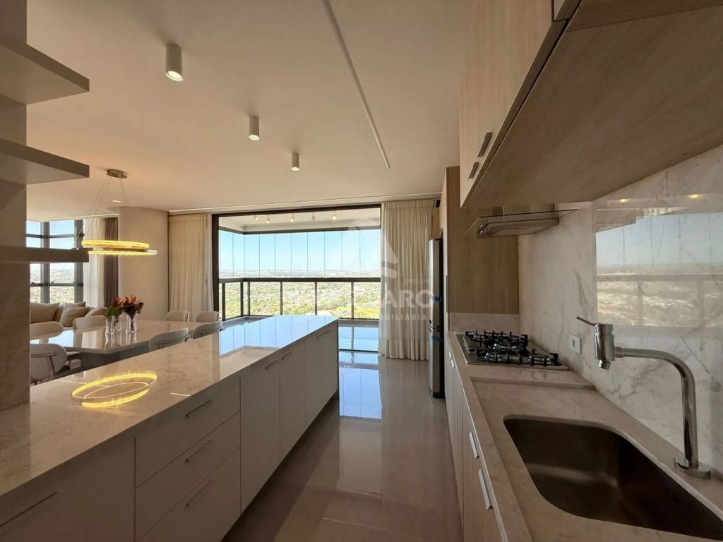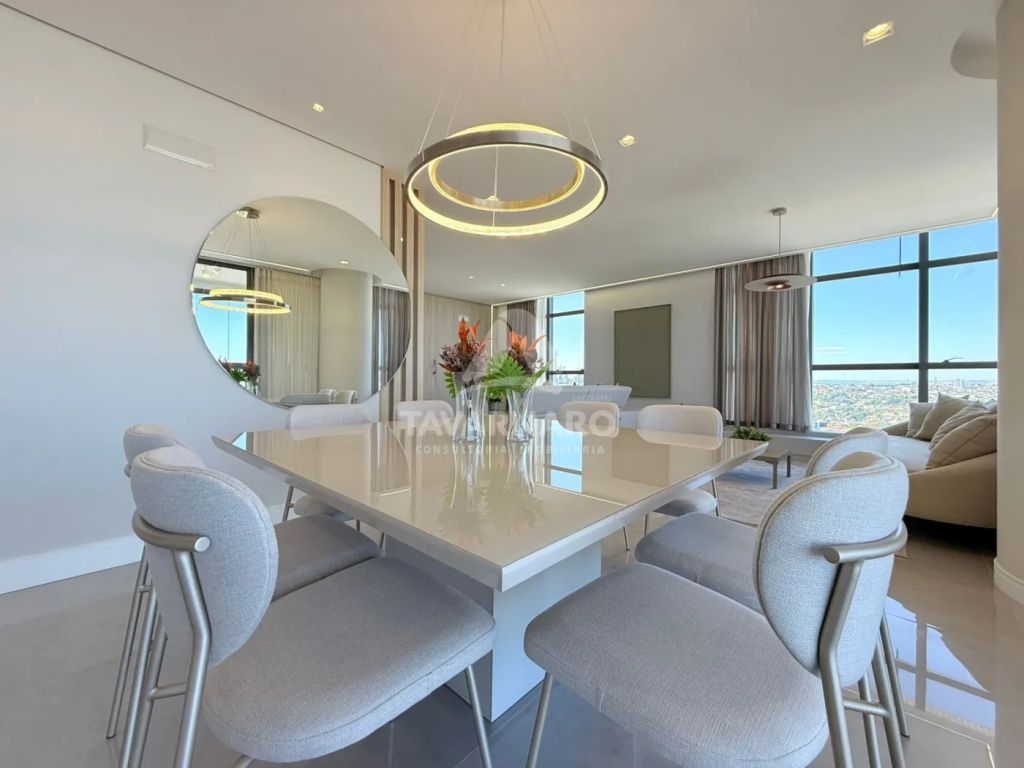 O apartamento possui 198m² de área privativa e 3 amplas vagas de garagem.