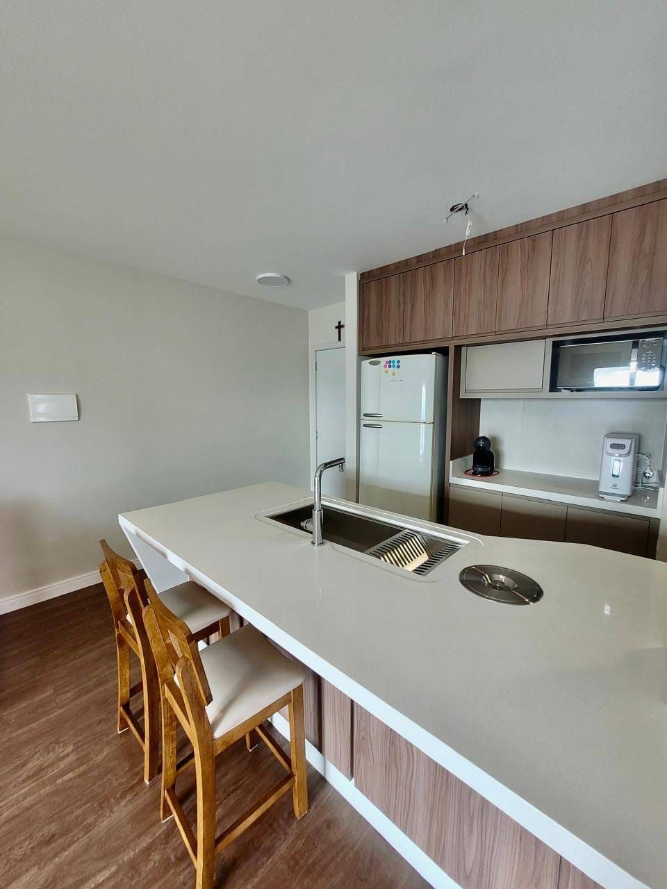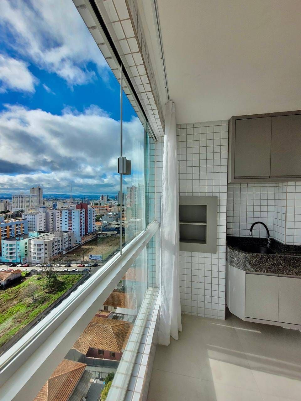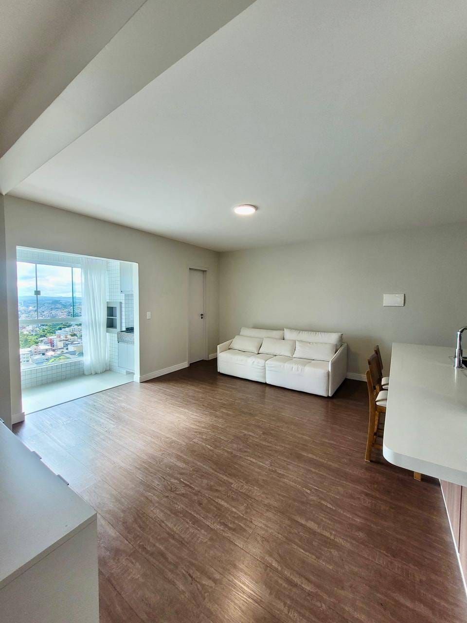 Excelente apartamento em andar alto e semi-mobiliado, localizado no Centro, contendo: 02 quartos (sendo demi-suíte com móveis planejados), sala ampla para 02 ambientes integrados com a cozinha com planejados, bancada, cooktop, área de serviço com planejados, lavabo, churrasqueira e 02 vagas de garagem.