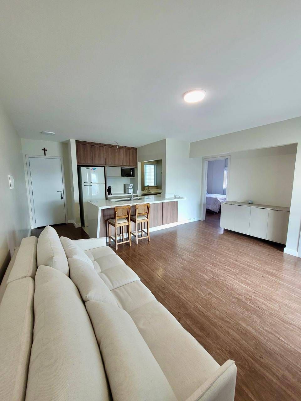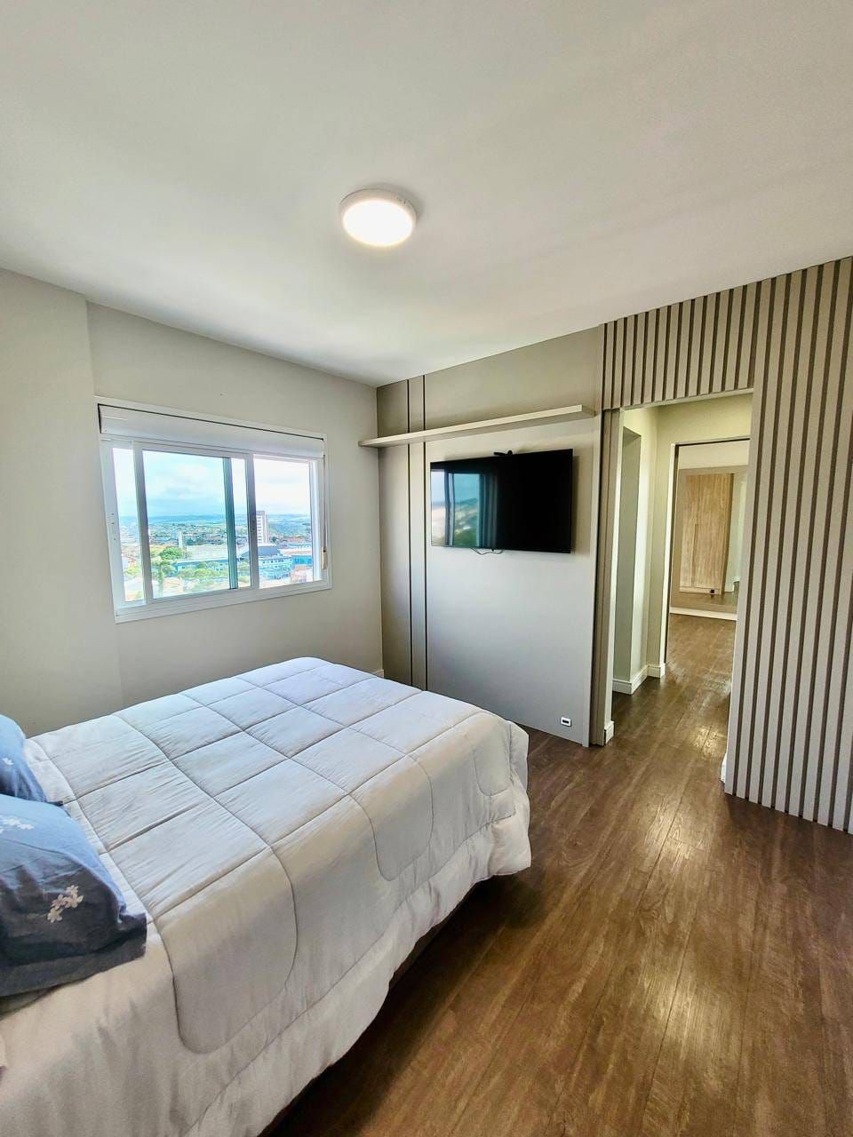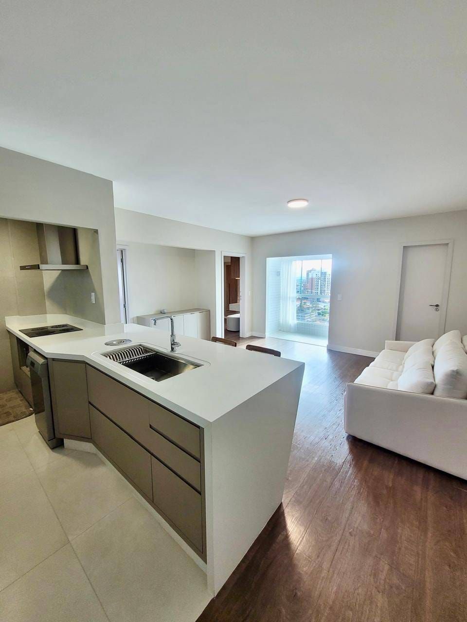Excelente apartamento em andar alto e semi-mobiliado, localizado no Centro, contendo: 02 quartos (sendo demi-suíte com móveis planejados), sala ampla para 02 ambientes integrados com a cozinha com planejados, bancada, cooktop, área de serviço com planejados, lavabo, churrasqueira e 02 vagas de garagem.