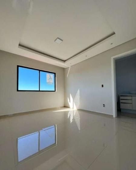 Piso superior: Dois quartos sendo uma suíte, banheiro social, área gourmet planejada integrada com churrasqueira, espaço para sala de jantar, dispensa, e uma ampla vagas de garagem.