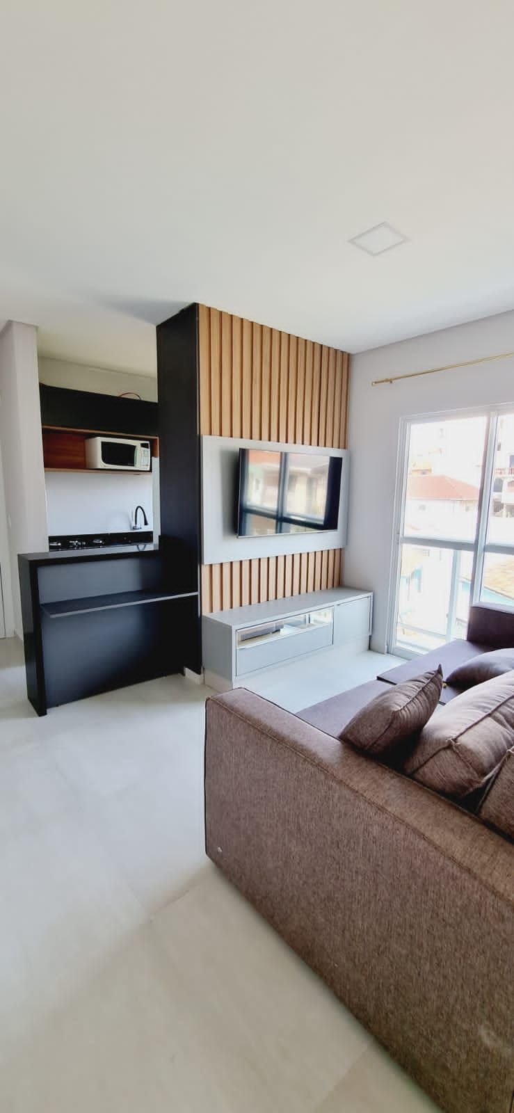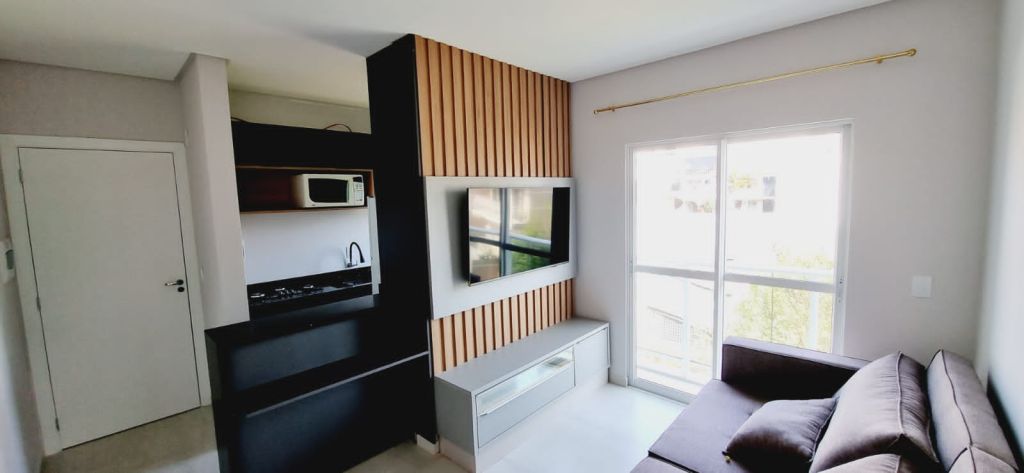 Amplo apartamento de 1 quarto, sala com sacada, cozinha, área de serviço, banheiro e 01 VAGA DE GARAGEM.