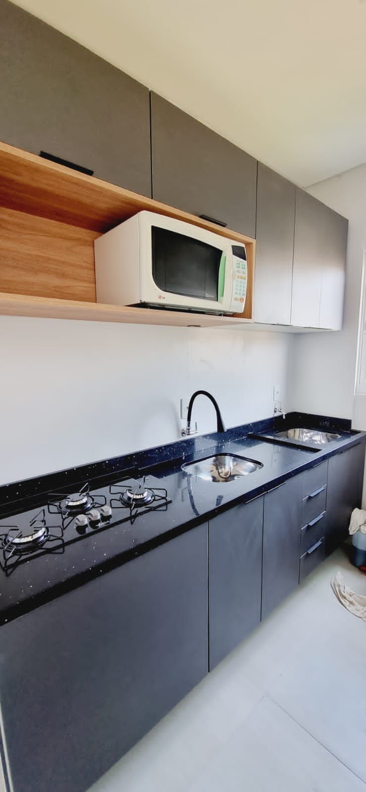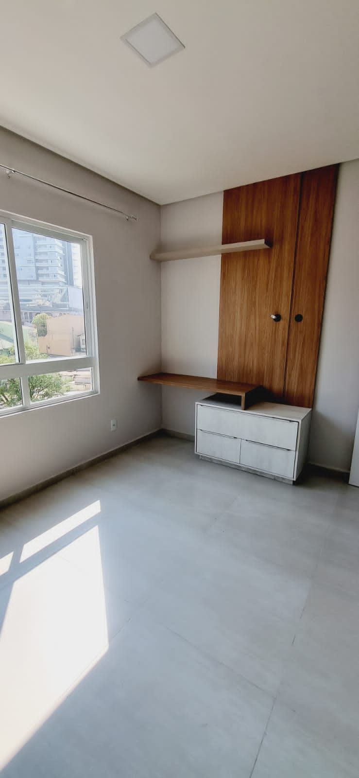 Apartamento com fino acabamento, janelas em alumínio, piso em porcelanato, rebaixado em gesso e aquecimento à gás.