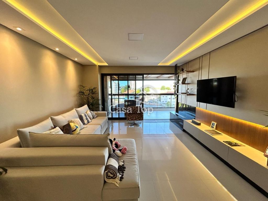 Apartamento medindo aprox. 226m², contendo 3 quartos (sendo 1 suíte), sala ampla para 2 ambientes, cozinha, ampla sacada gourmet, lavabo, área de serviço, BWC social e 2 vagas de garagem.