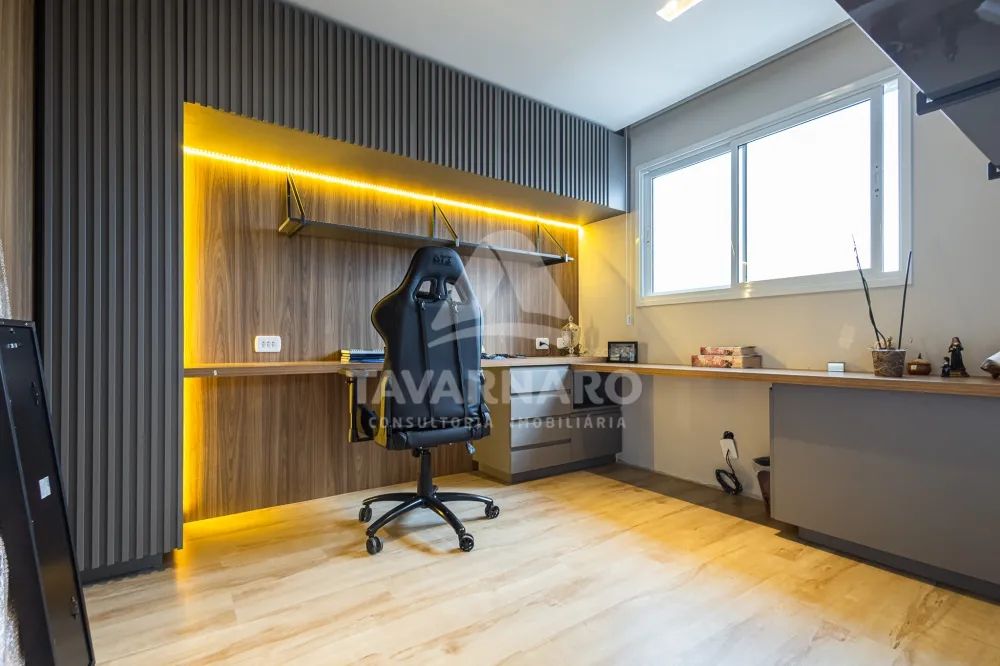 No piso superior, há uma área gourmet e uma suíte master com 2 closets.