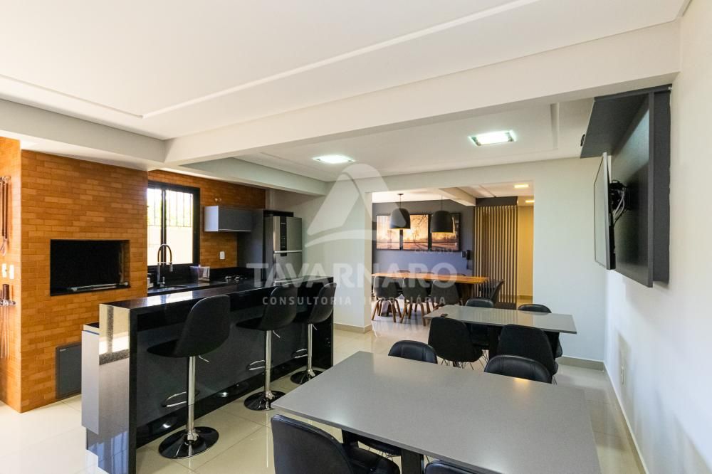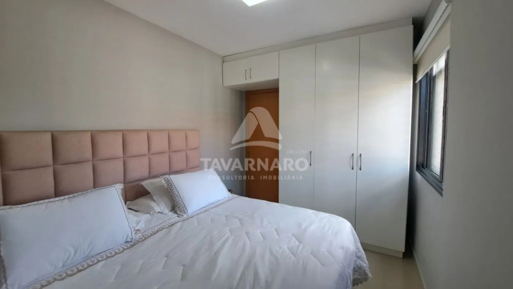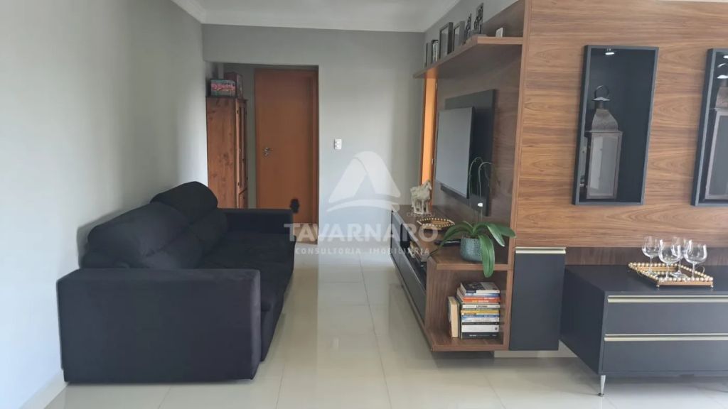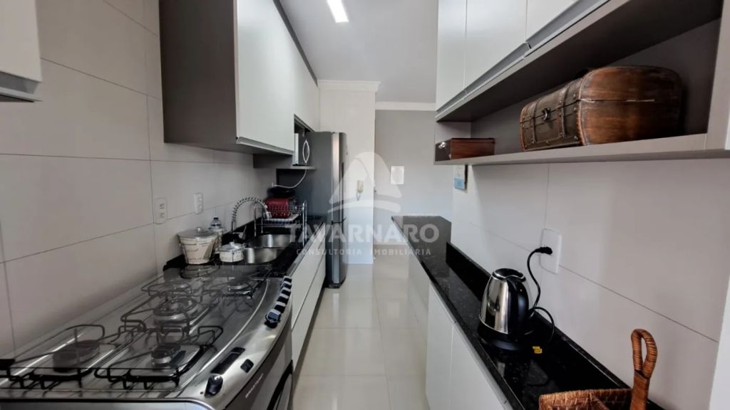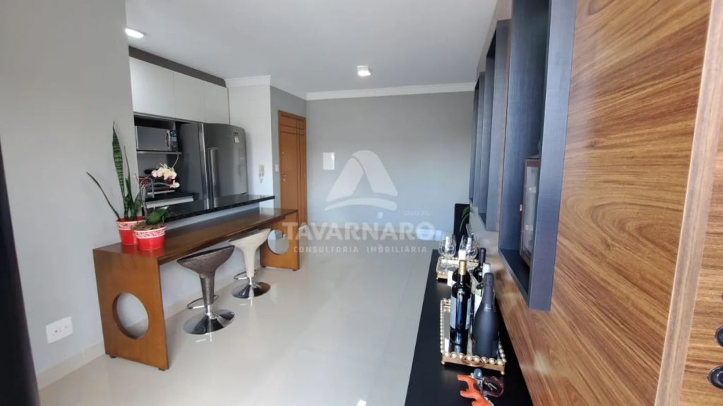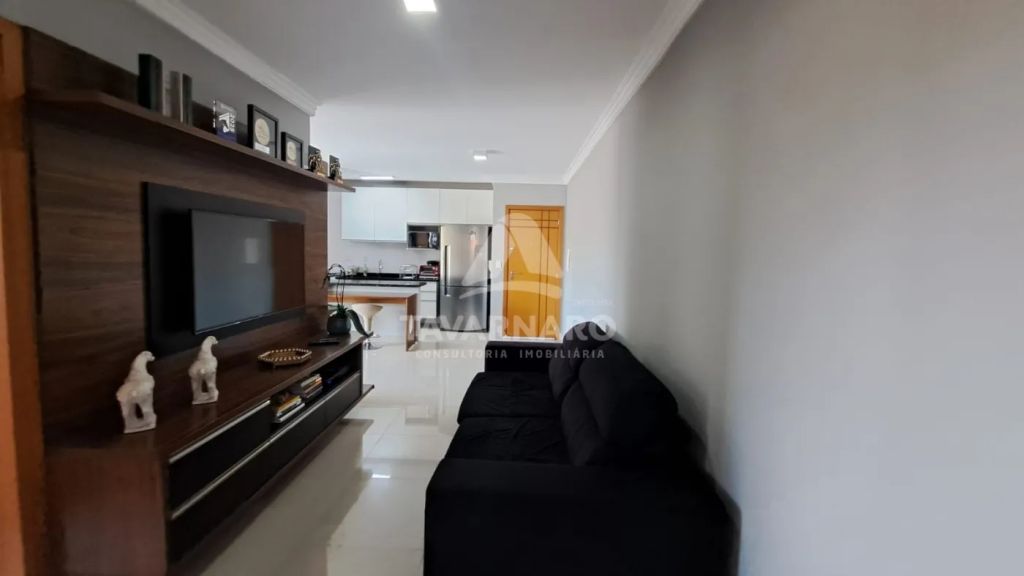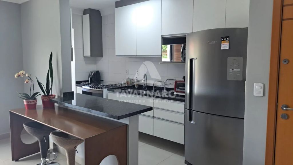 Possui 2 quartos com armários, sala de estar com painel, sala de jantar com painel, cozinha com armários, área de serviço e banheiro social.