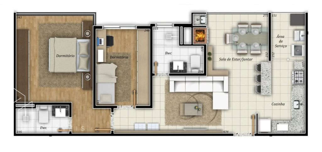 2 Quartos (1 suíte totalmente mobiliada)