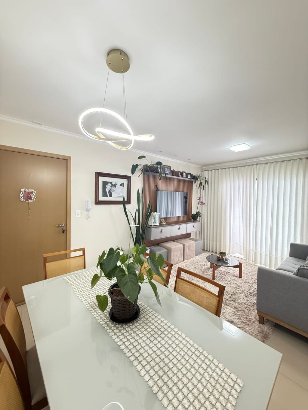 Apartamento em ótima localização a uma quadra do DETRAN e semi mobiliado contendo: 02 quartos sendo 01 deles com planejados e o outro com armários, sala ampla para dois ambientes com painel de TV, espelho e lustres, sacada com churrasqueira fechada em vidro, cozinha e área de serviço integrada com armários planejados e bancada em mármore, banheiro social com armário e box blindex e uma vaga de garagem coberta.