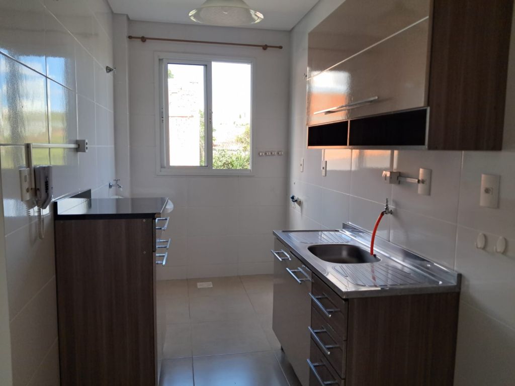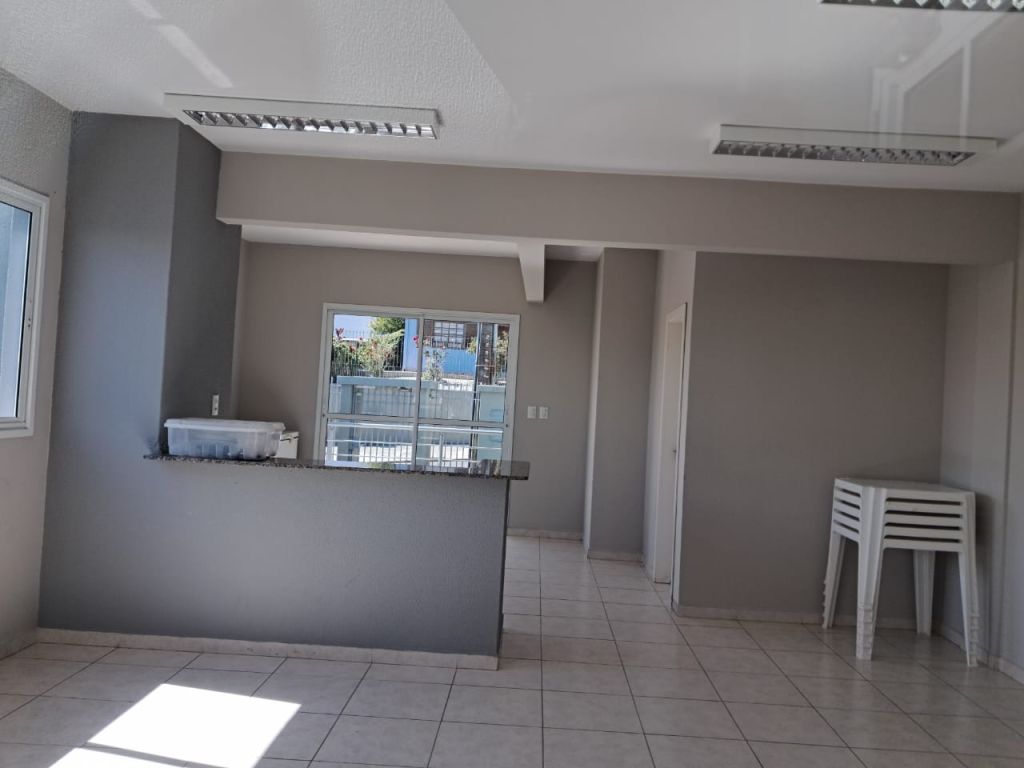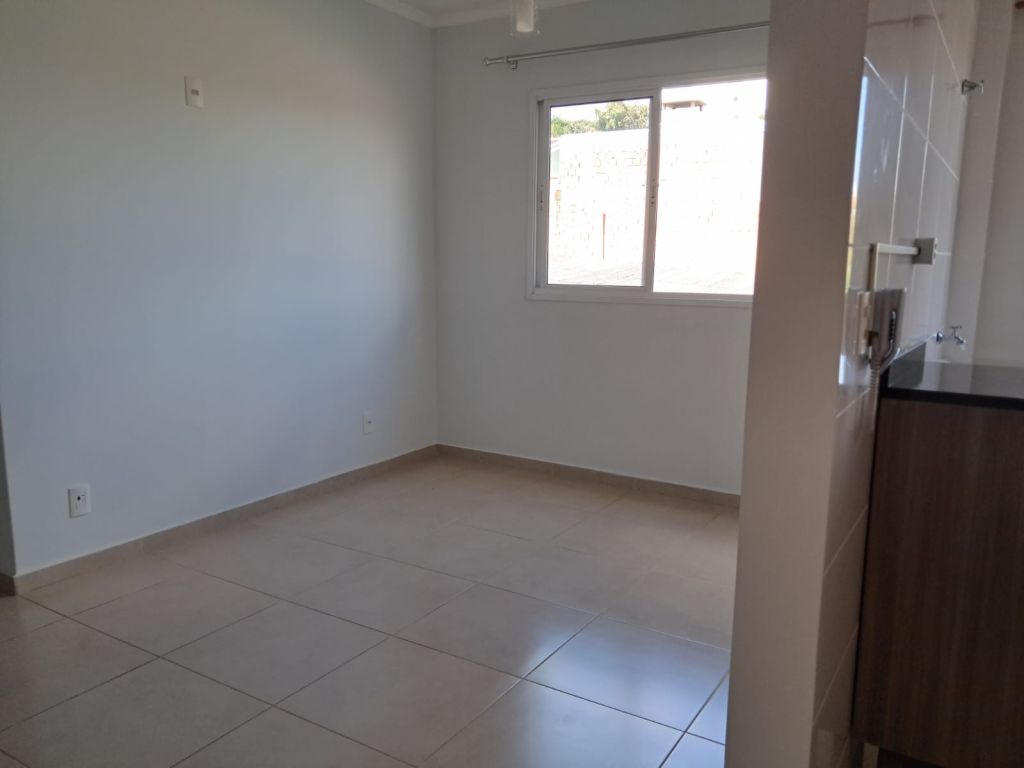 Um apartamento contendo sala, cozinha, 02 dormitórios, 01 banheiro social, área de serviço e 01 vaga de garagem.