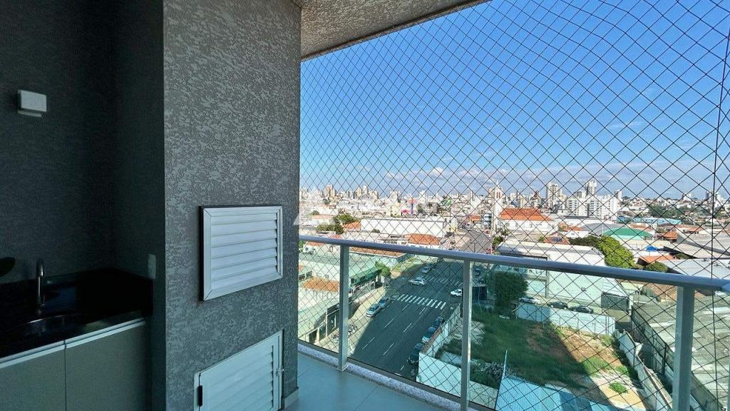 É dividido em 3 quartos (sendo uma suíte com closet), hall de entrada, sacada com churrasqueira, ampla sala de estar conjugada com sala de jantar, cozinha e banheiro social.