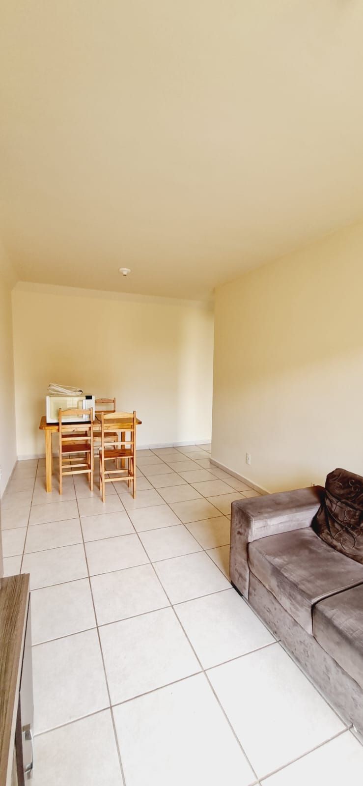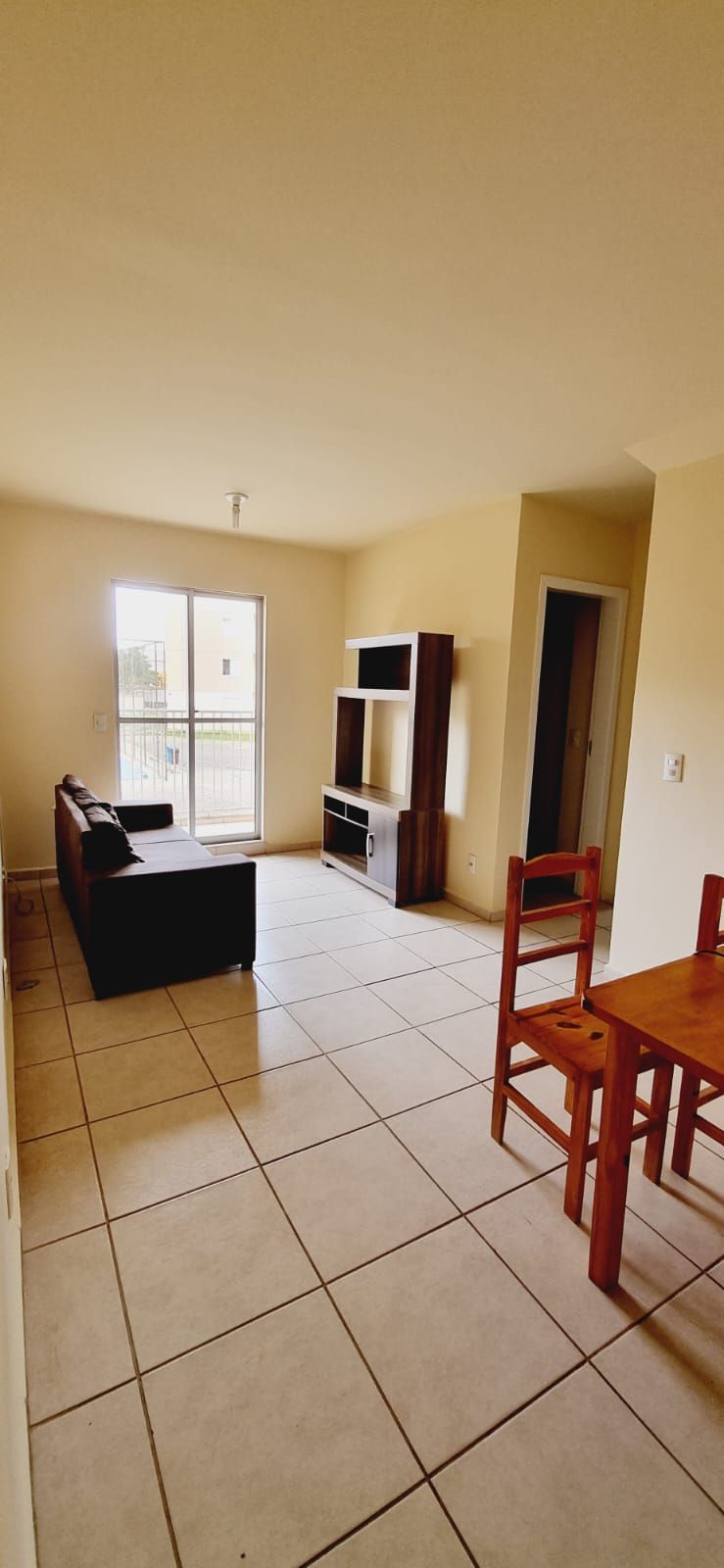 Apartamento mobiliado no Condomínio Le Village Pitangui contendo: Sala para dois ambientes, sacada, banheiro, 02 quartos, cozinha com área de serviço e 01 vaga de estacionamento.